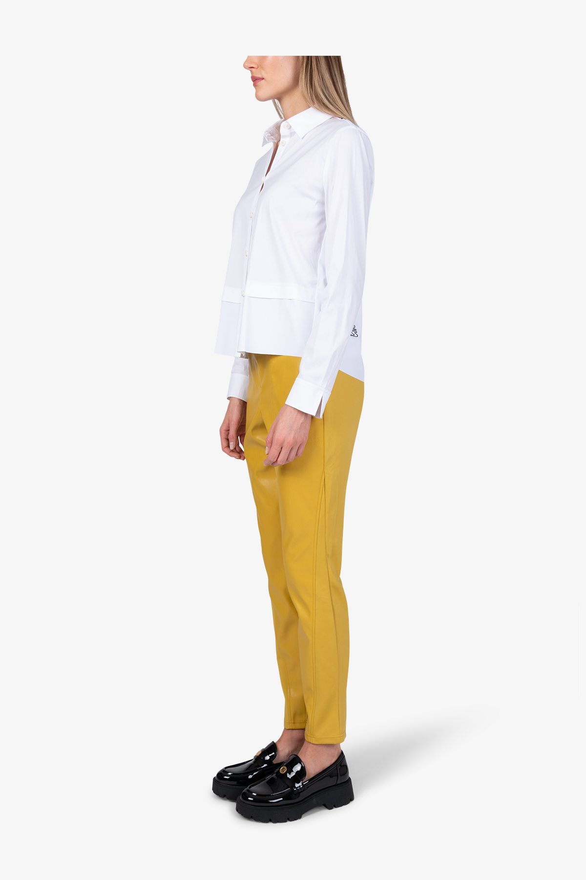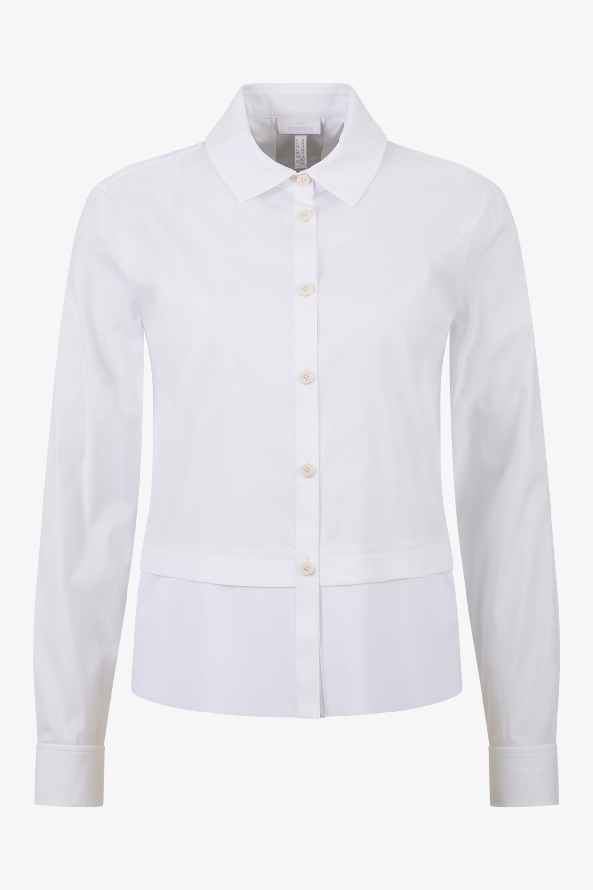 Казуальная блуза из тонкого сочетания материалов впечатляет элегантной отделкой и универсальными возможностями для комбинаций.