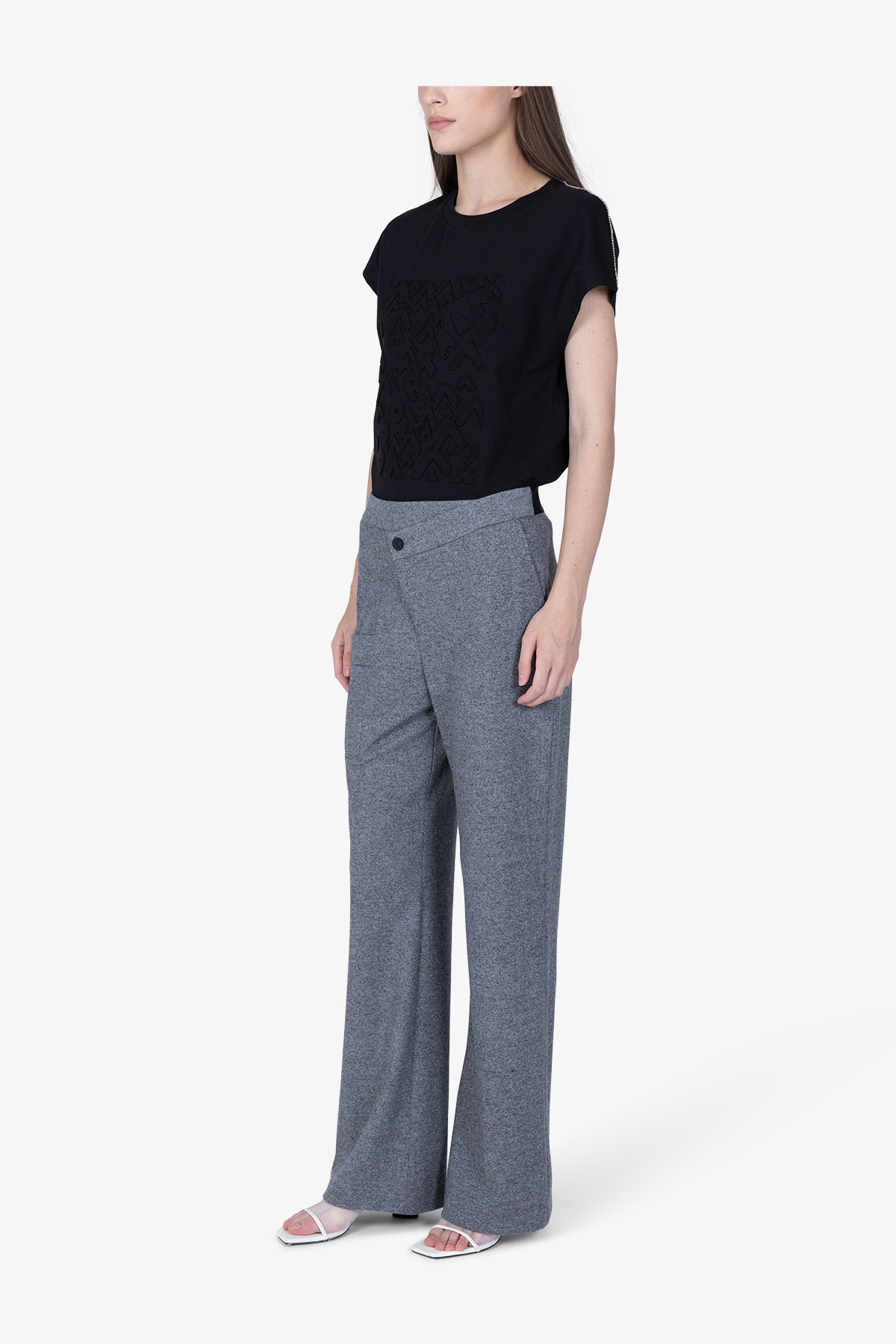 Брюки с экстравагантным асимметричным поясом отличаются выразительным модным силуэтом. Они станут идеальным компаньоном для стильных образов.