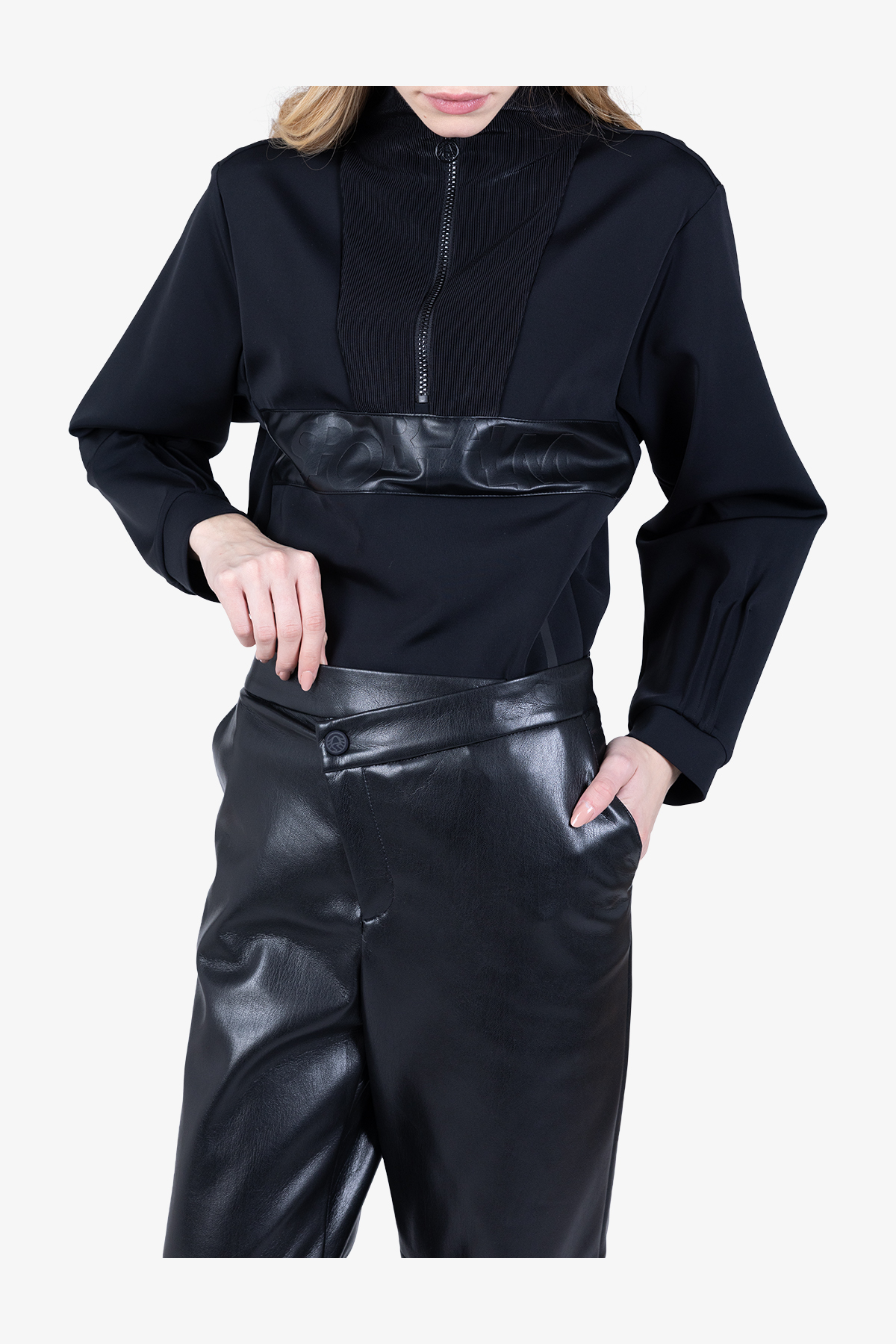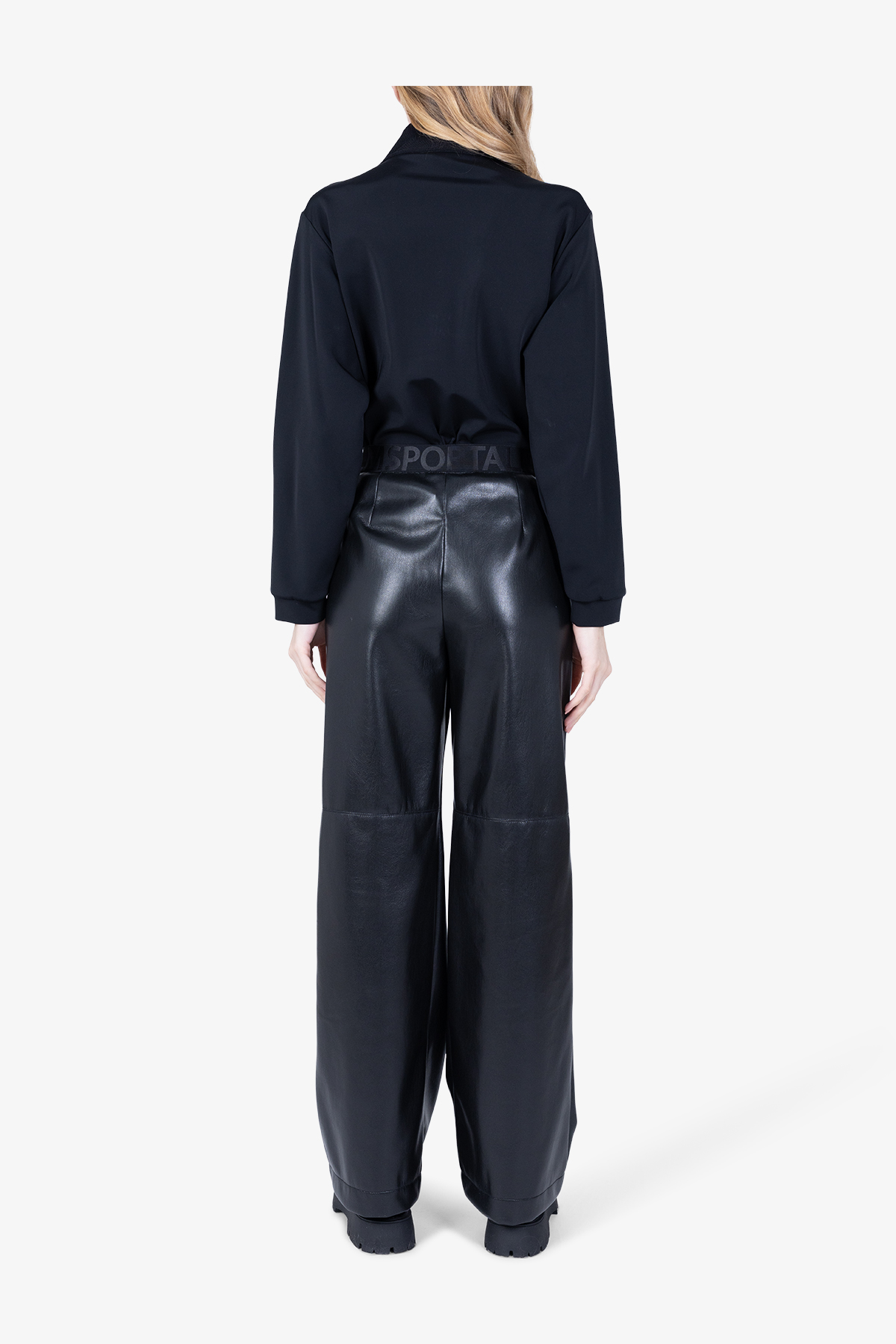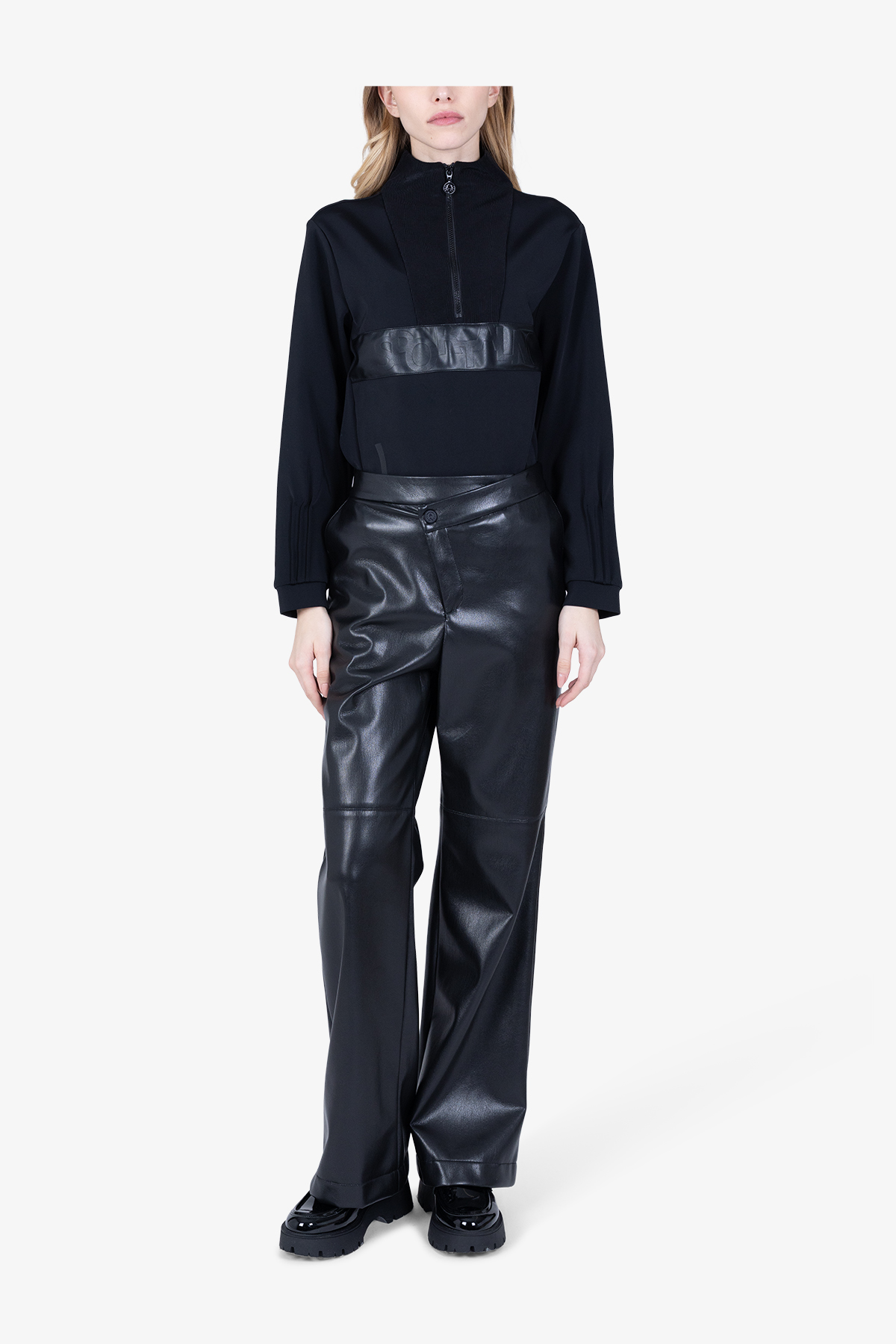 Брюки из искусственной кожи с экстравагантным асимметричным поясом для утонченного и модного вида. Этот дизайн сочетает вневременную элегантность с современным уникальным обликом.