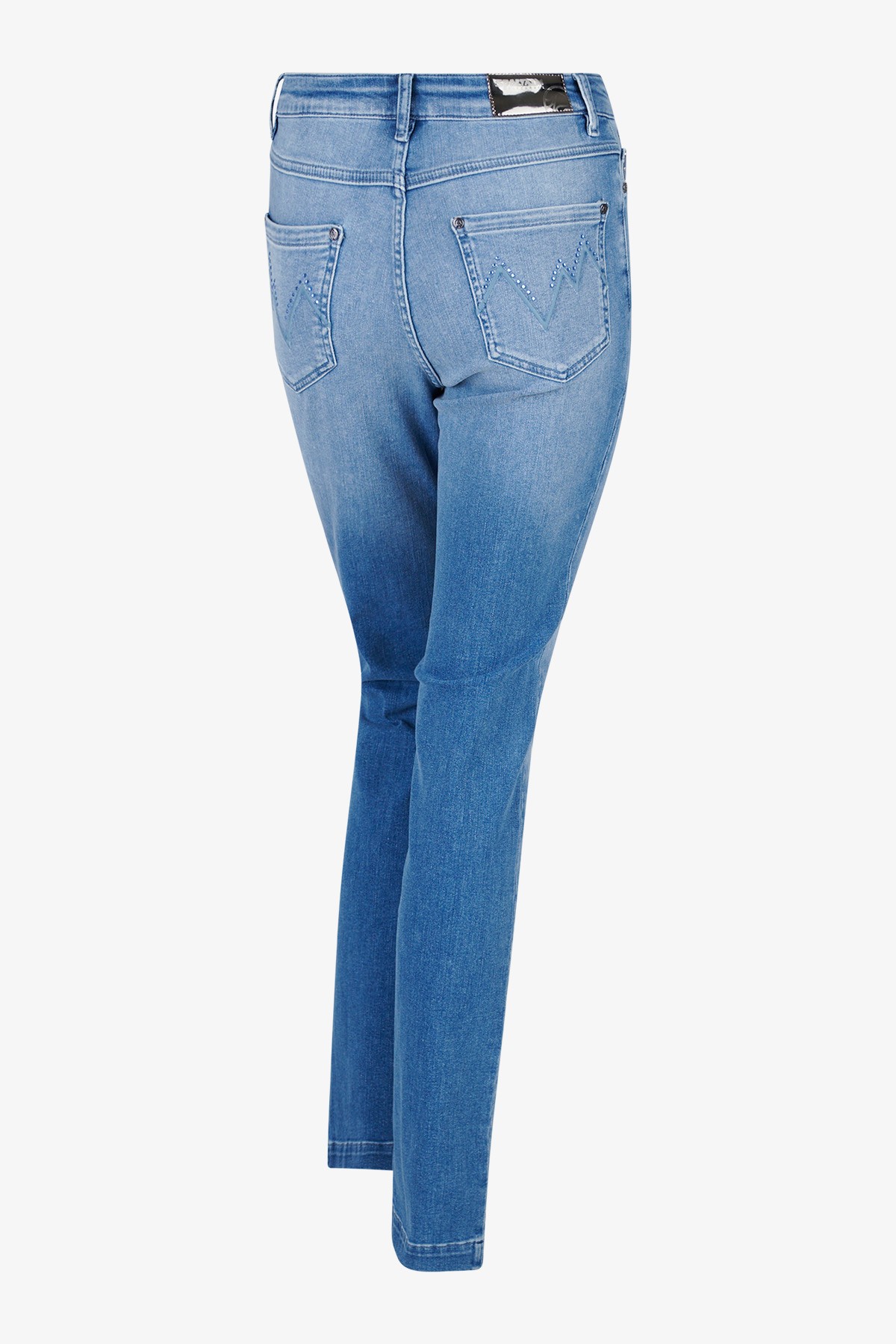 - Вышивка и стразы в виде горного мотива на задних карманах