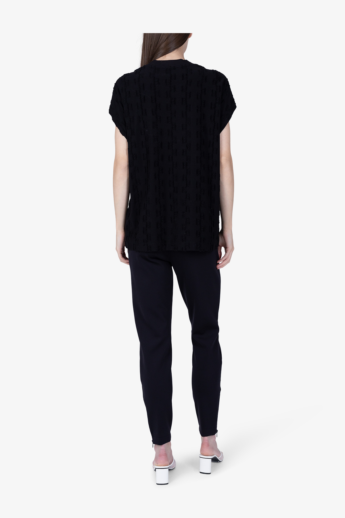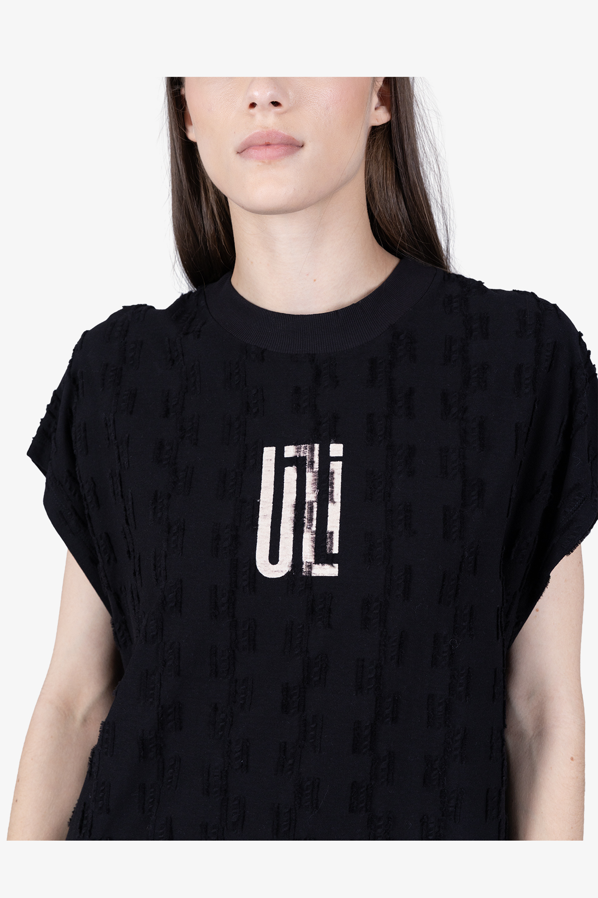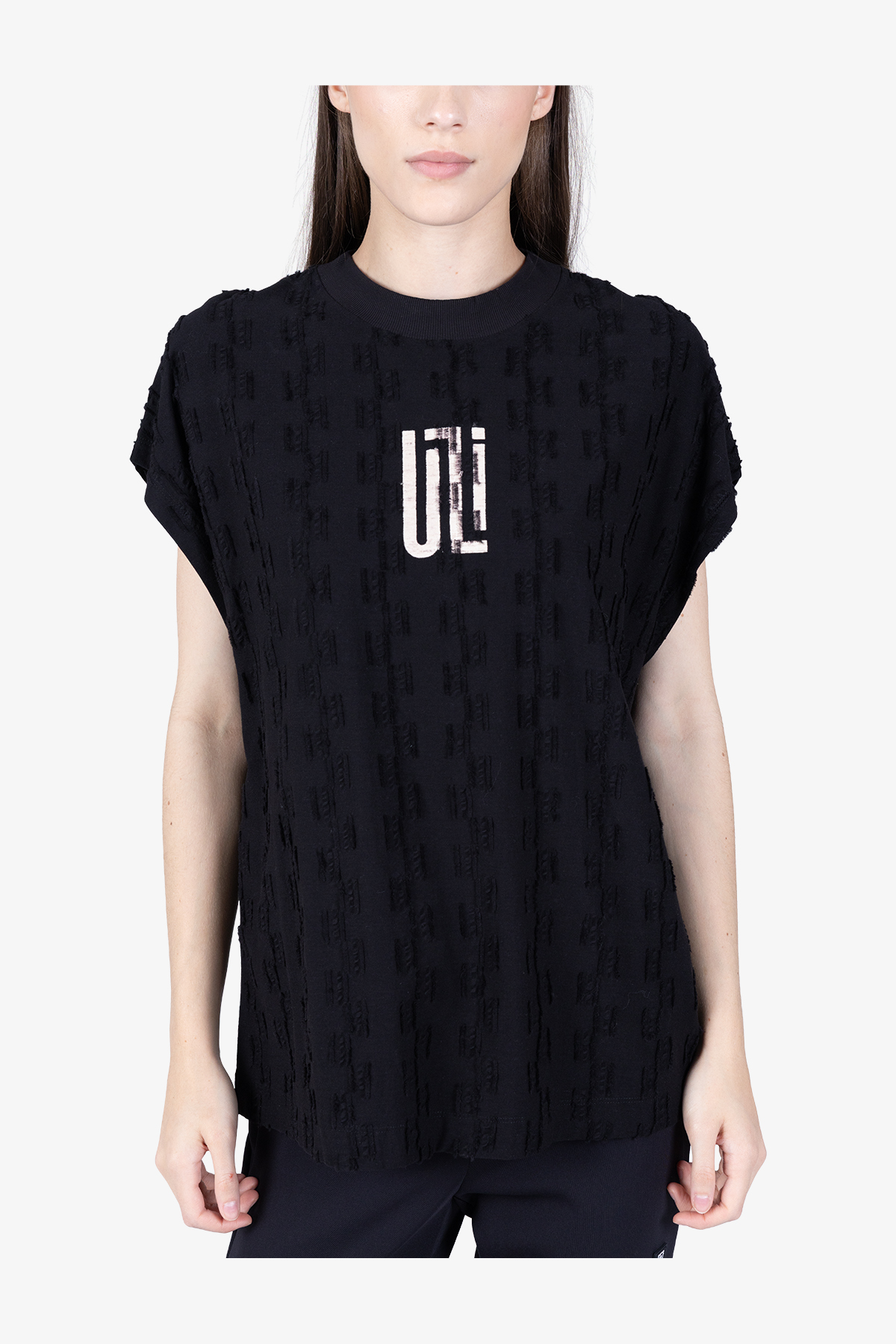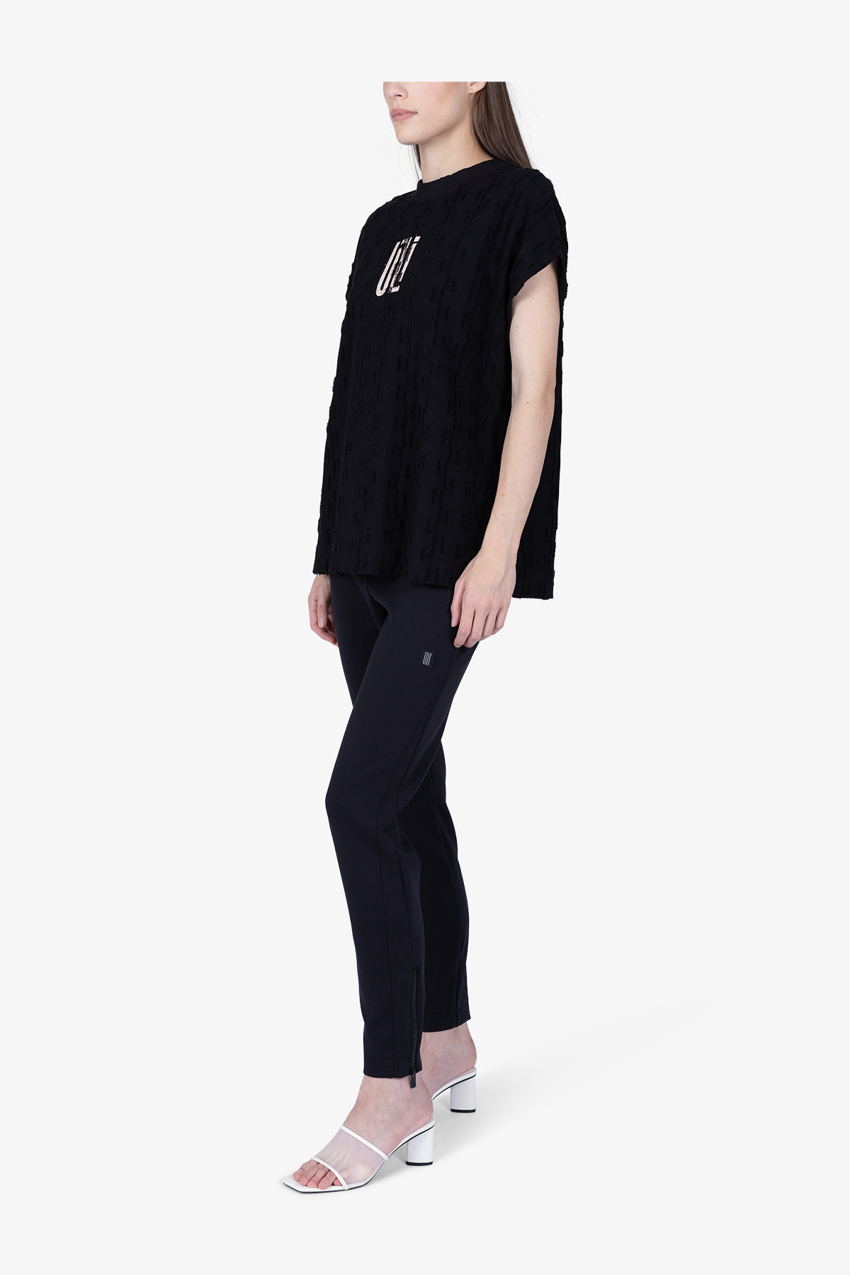 Модная оверсайз футболка из повседневного джерси отличается стильным эффектом бахромы. Выразительный логотип спереди добавляет стильный акцент и завершает трендовый образ.