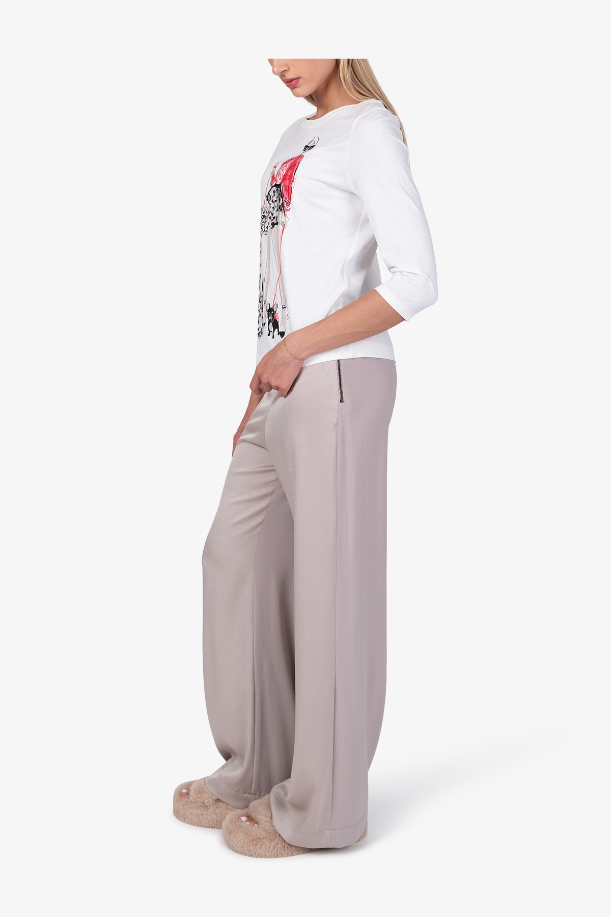 Футболка из высококачественного хлопка с женственной иллюстрацией. Бисер и пайетки добавляют стильные акценты.