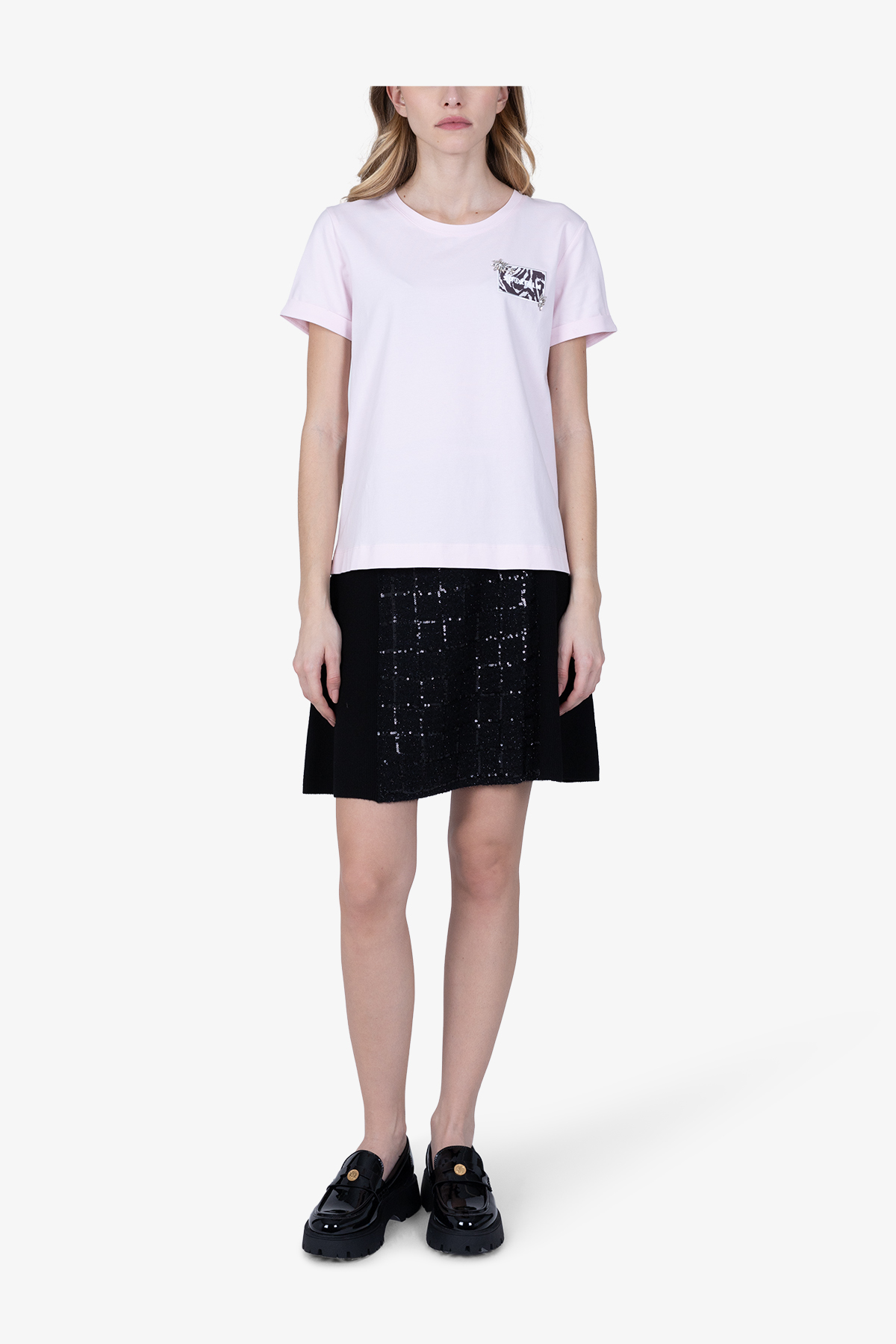 Повседневная футболка с изысканной эмблемой спереди. Она соединяет комфорт с модным штрихом в виде эмблемы, которые прекрасно сочетаются с любым повседневным образом.