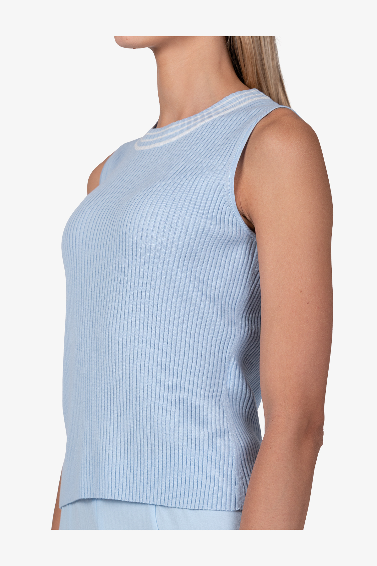 Облегающий топ-танк из высококачественной пряжи мериноса, шелка и кашемира мелкой вязки обеспечит максимальный комфорт и добавит изысканности образу.