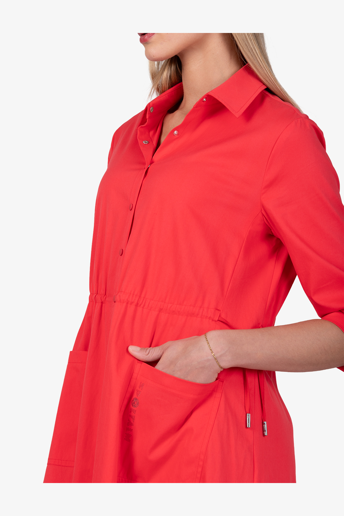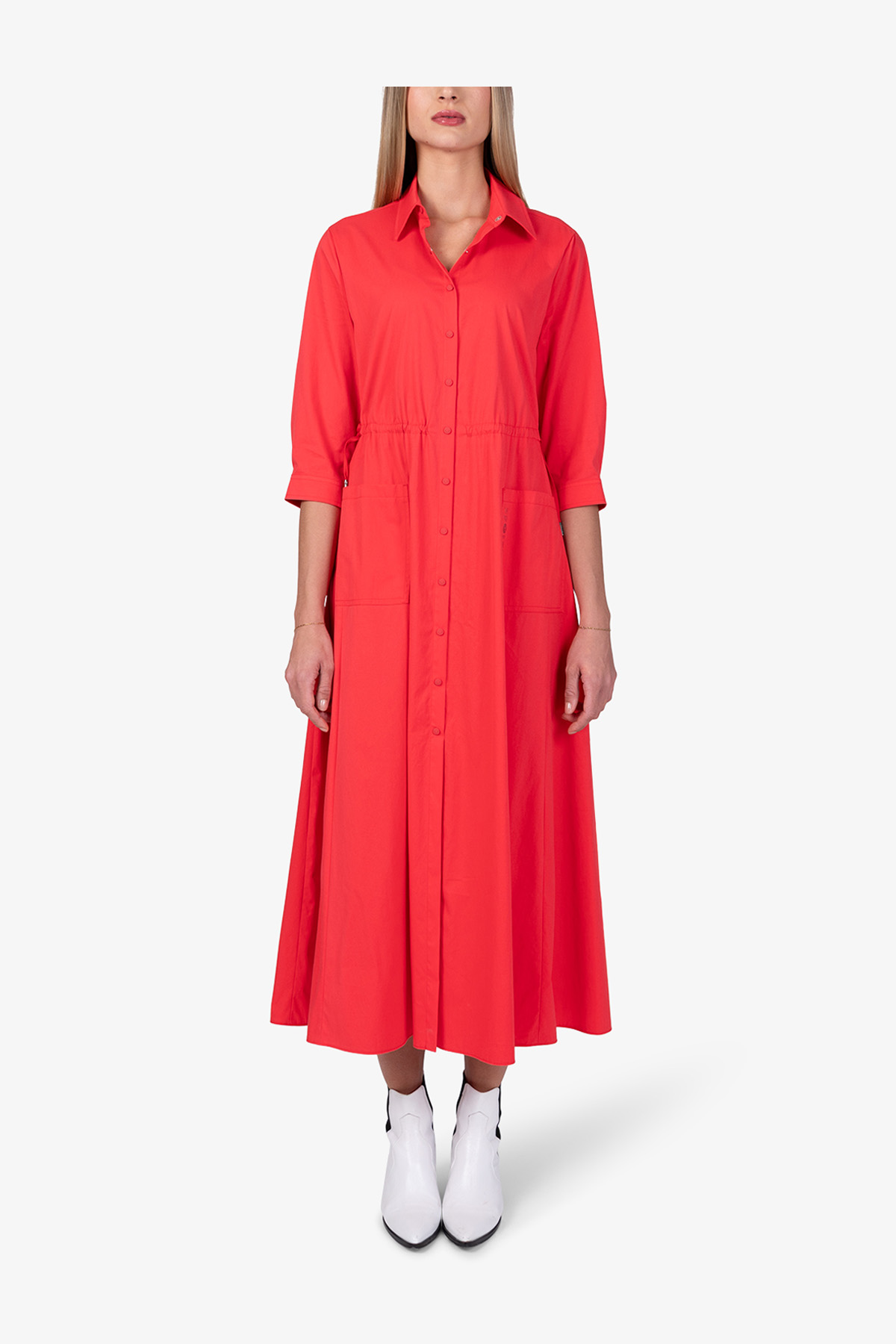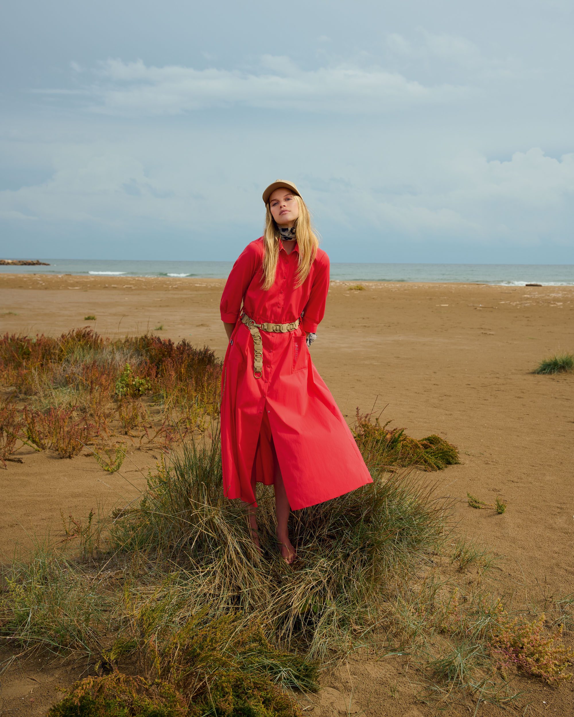 Летнее хлопковое платье с большими накладными карманами. Кулиска на талии позволяет индивидуально регулировать ширину и создает женственный силуэт.