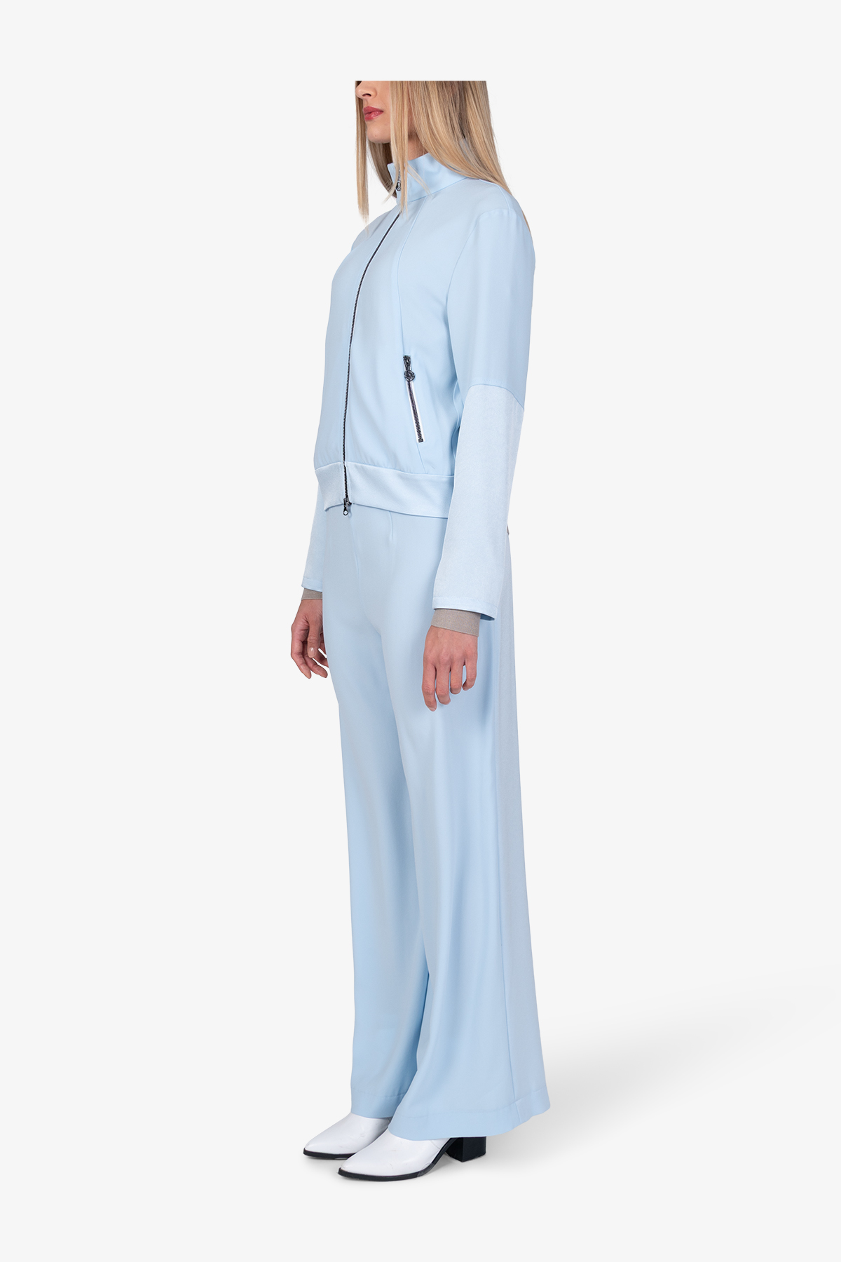 Элегантная куртка из высококачественного крепа отличается выразительной игрой матовых и блестящих эффектов. Она придаст любому образу элегантный и современный вид.