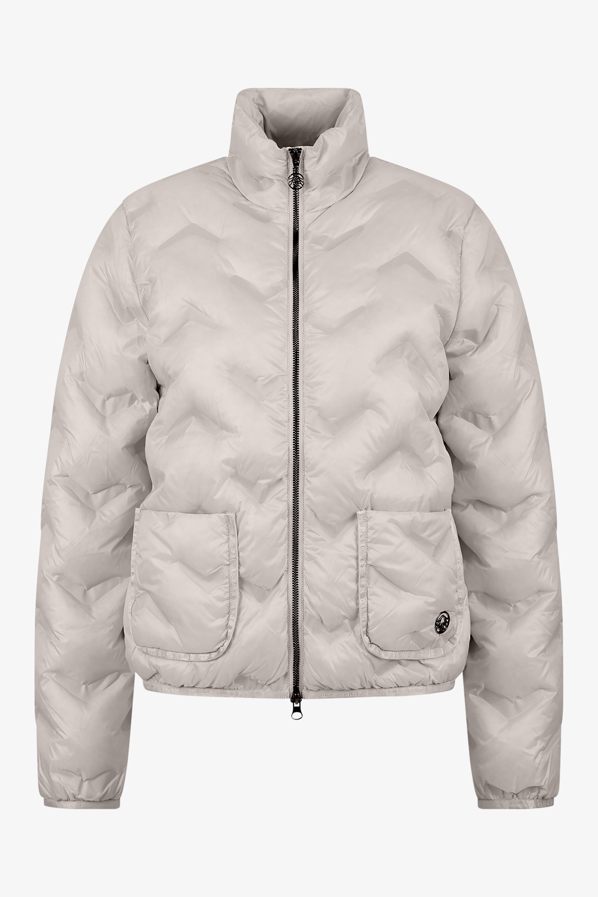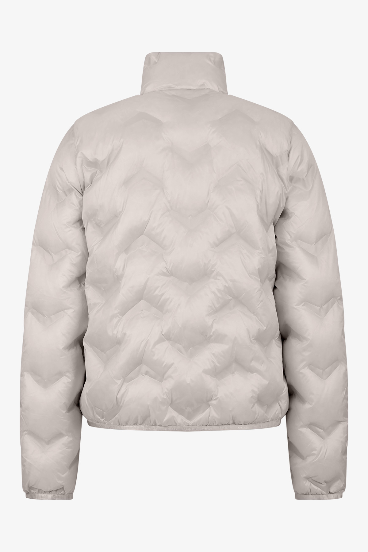 Легкий пуховик не только согревает, но и имеет элегантный вид. Благодаря воротнику-стойке и графическому тиснению она подарит вам стильный образ.