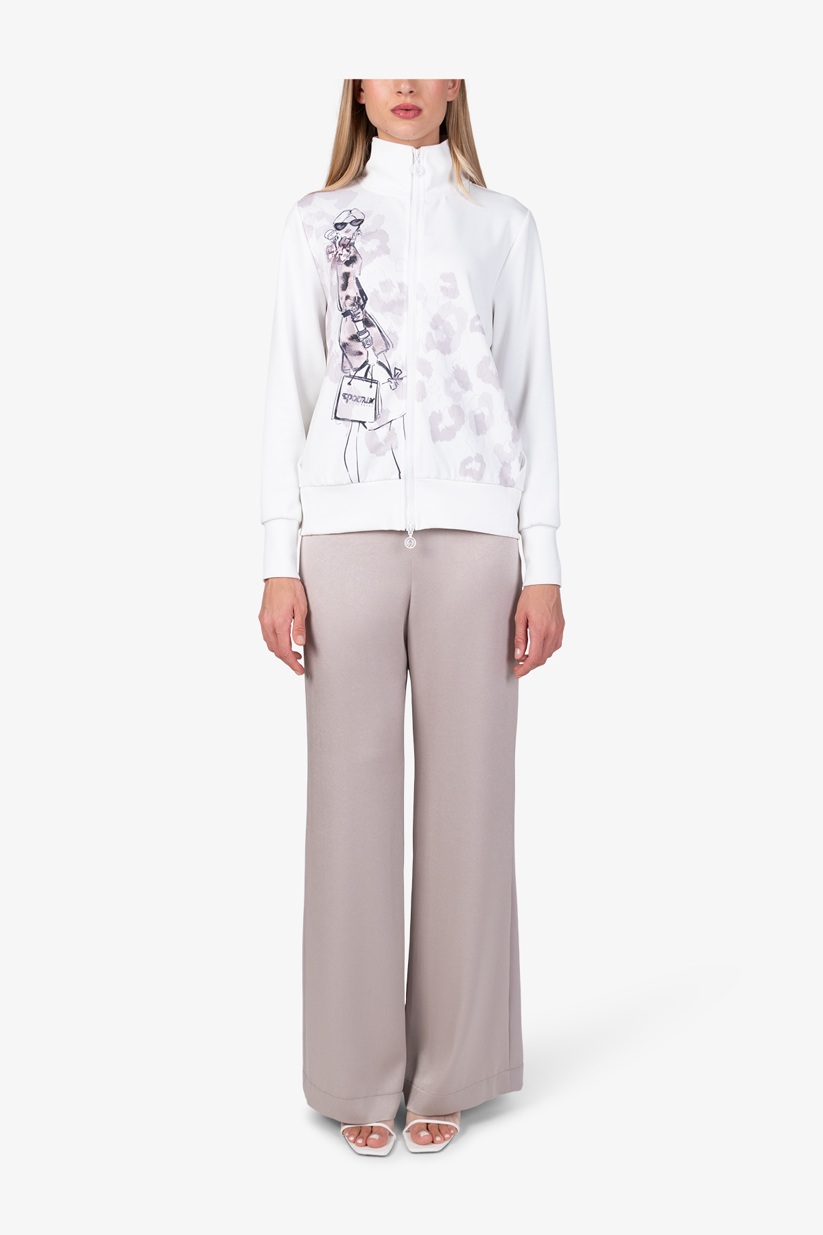 Стильная хлопковая куртка-свитшот имеет стилизованный принт спереди.