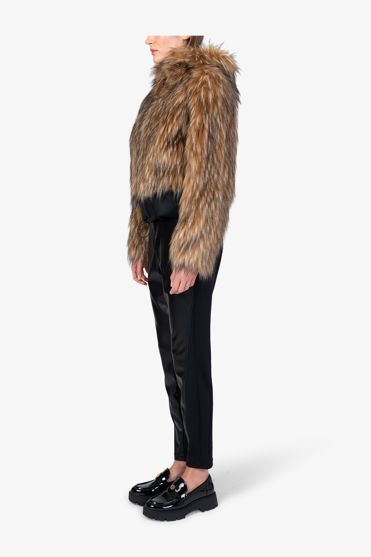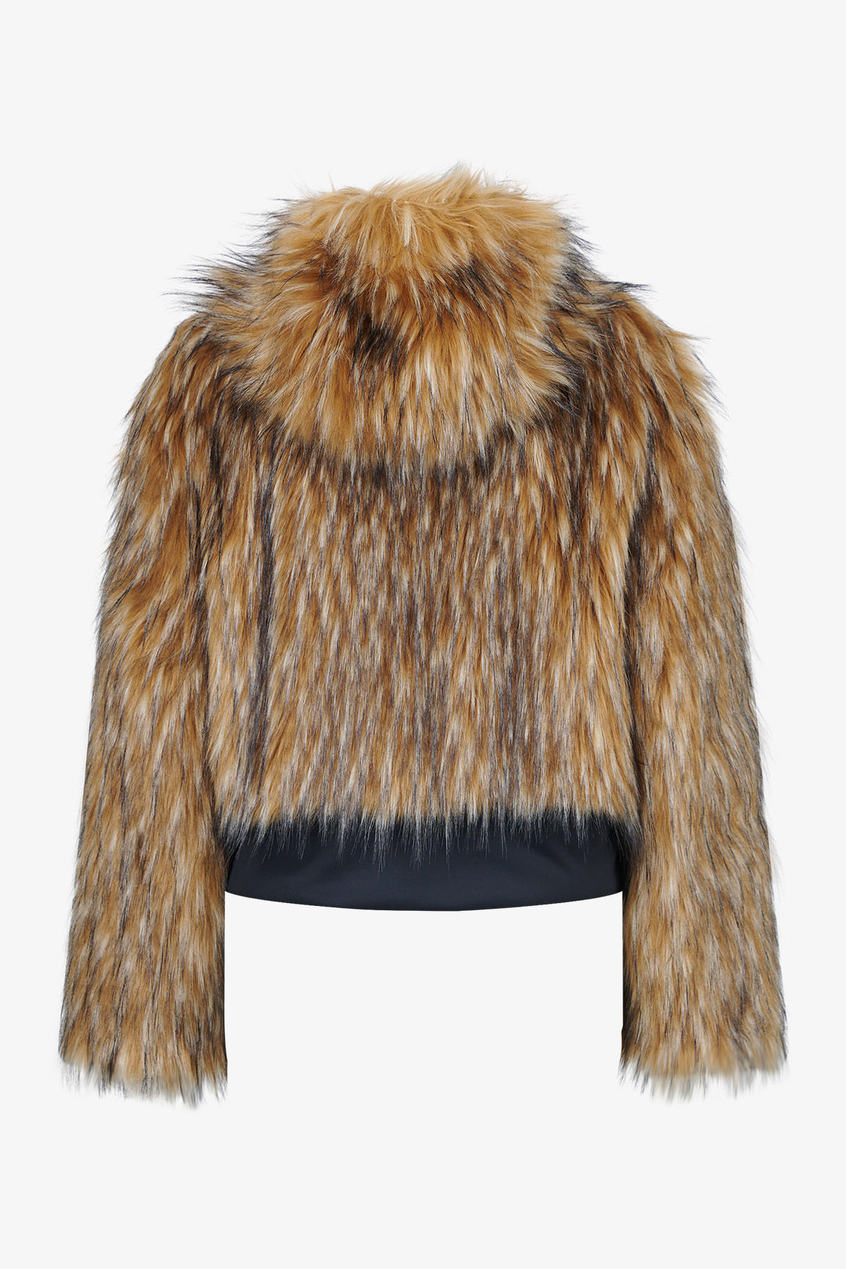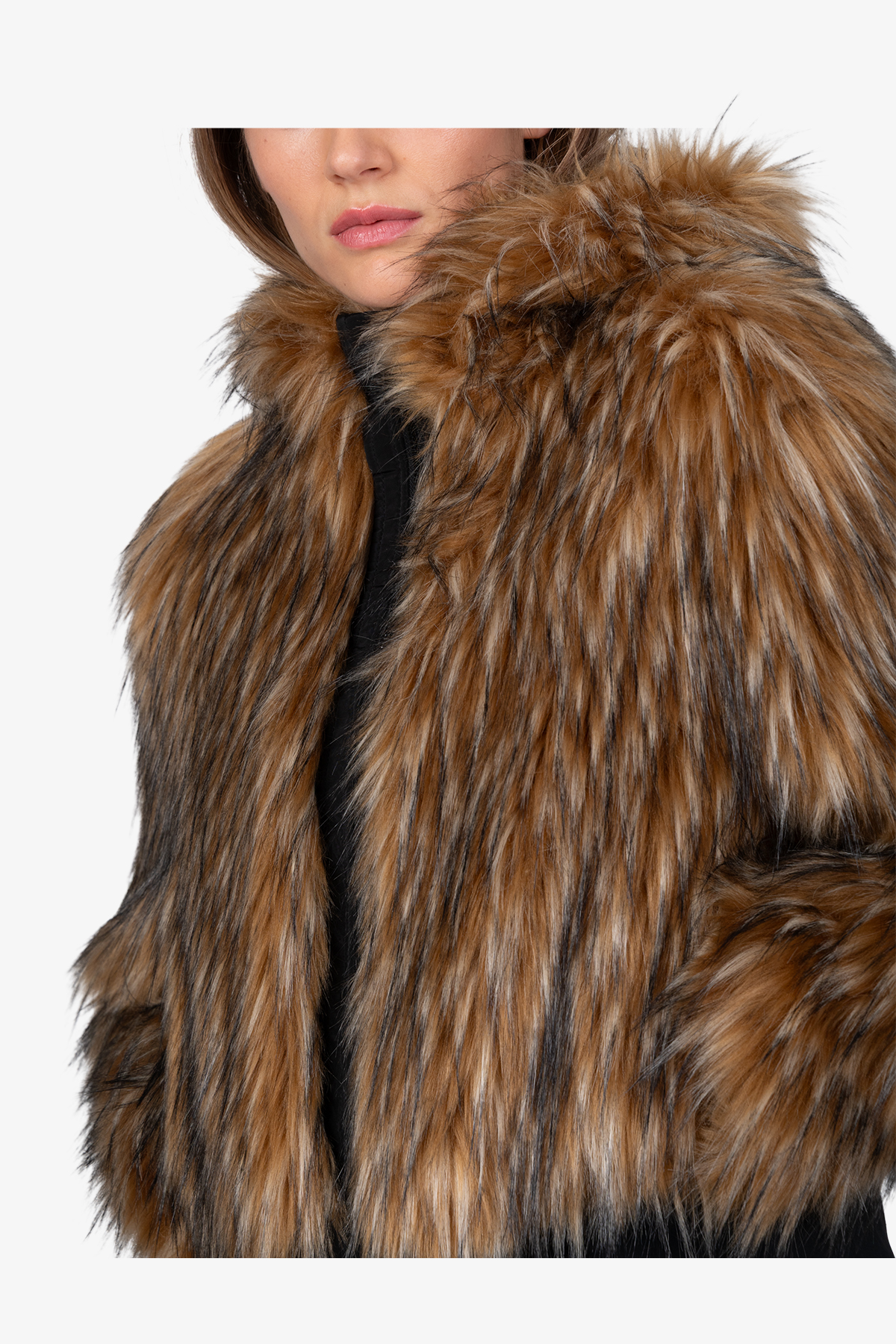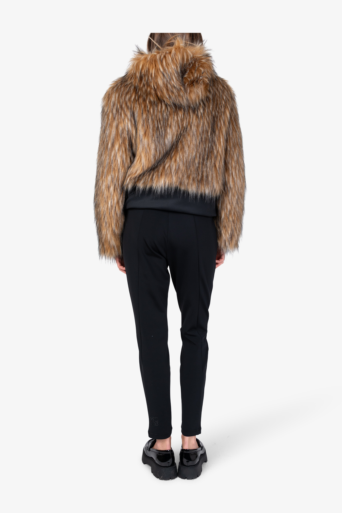 Элегантная куртка из искусственного меха с капюшоном - незаменимый предмет гардероба для создания стильных образов. Уютная, мягкая и роскошно исполненная, она дарит элегантность и тепло в любое время года.