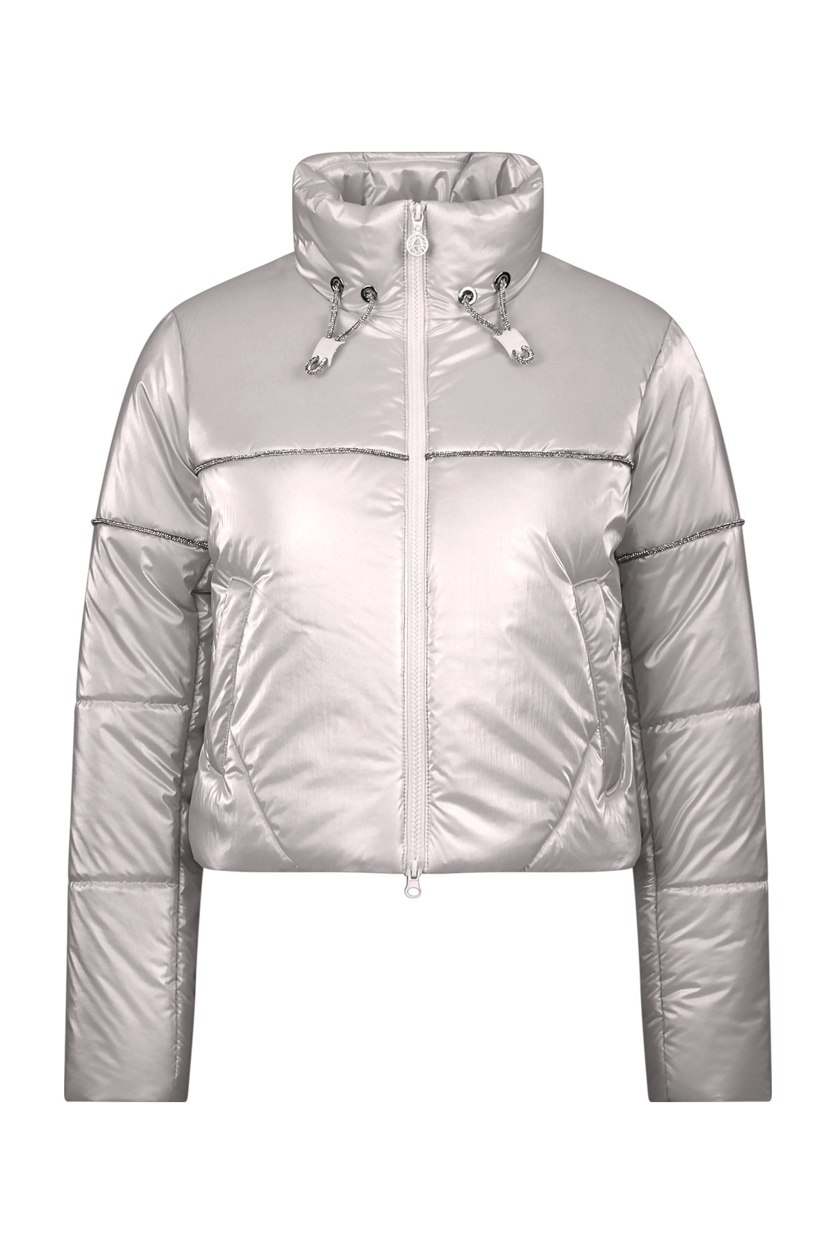 Модная короткая стеганая куртка для активного отдыха с элегантным воротником-стойкой сочетает функциональность и стиль. Сверкающая отделка стразами добавляет гламурный штрих и делает куртку особенной.