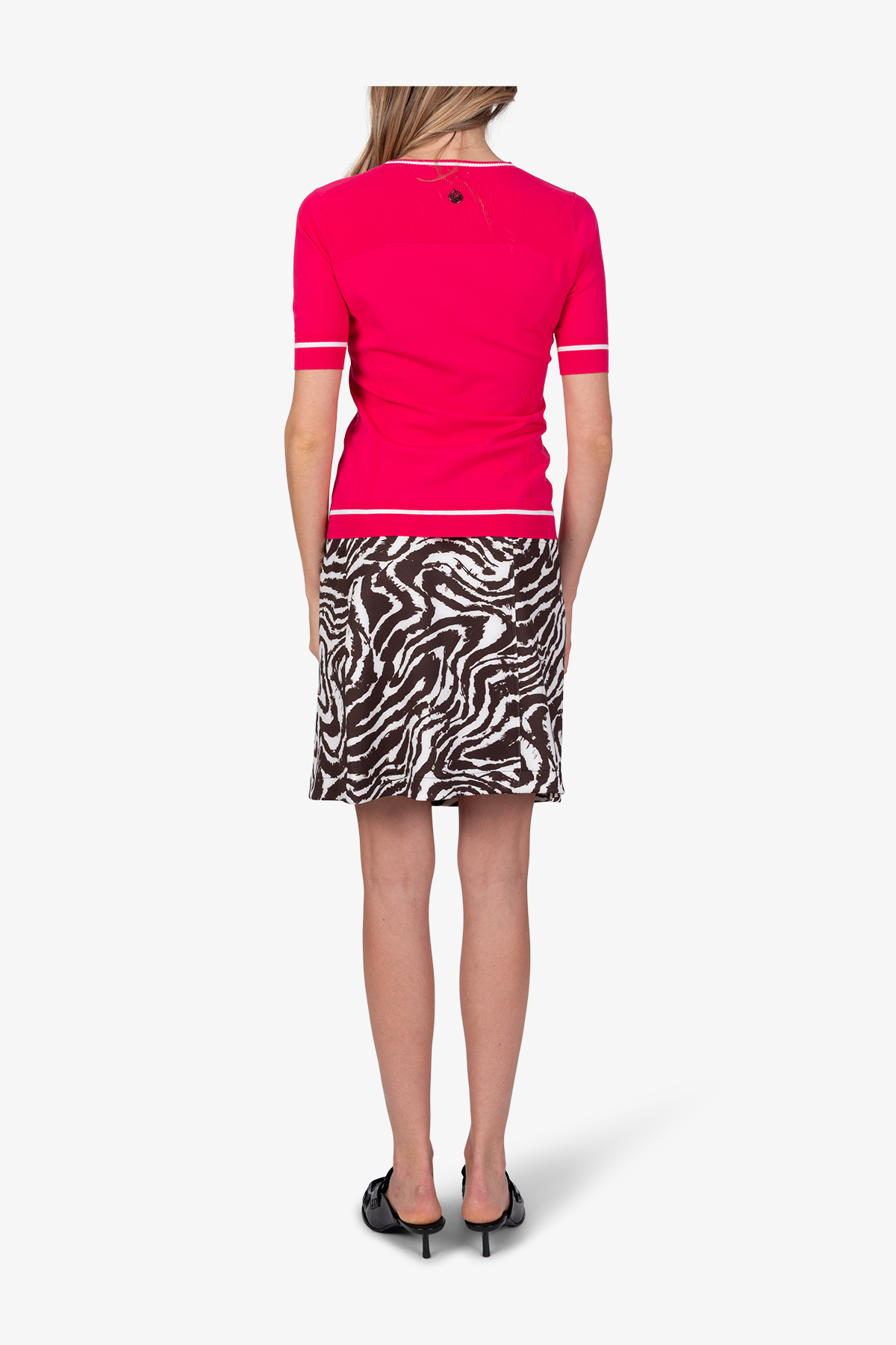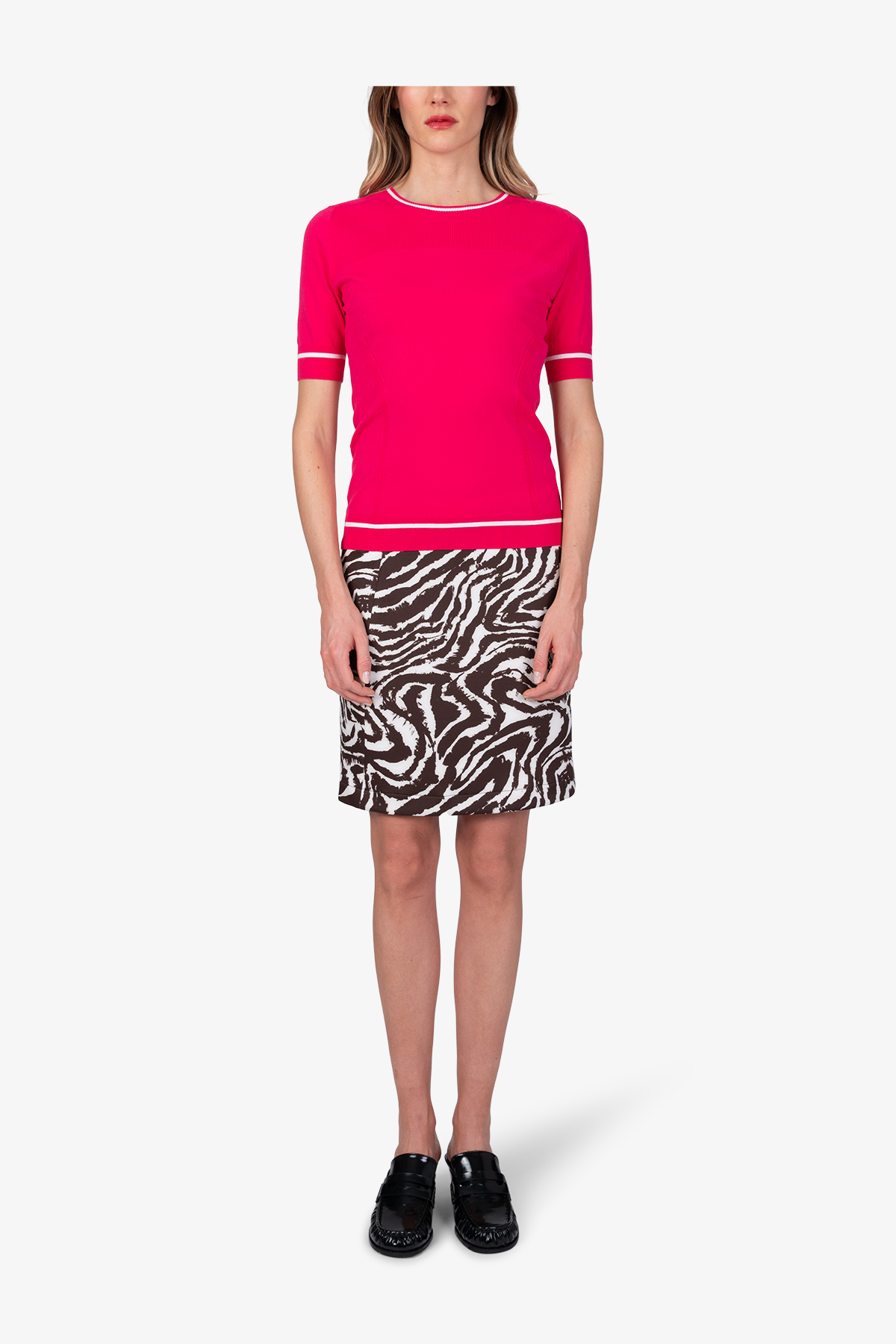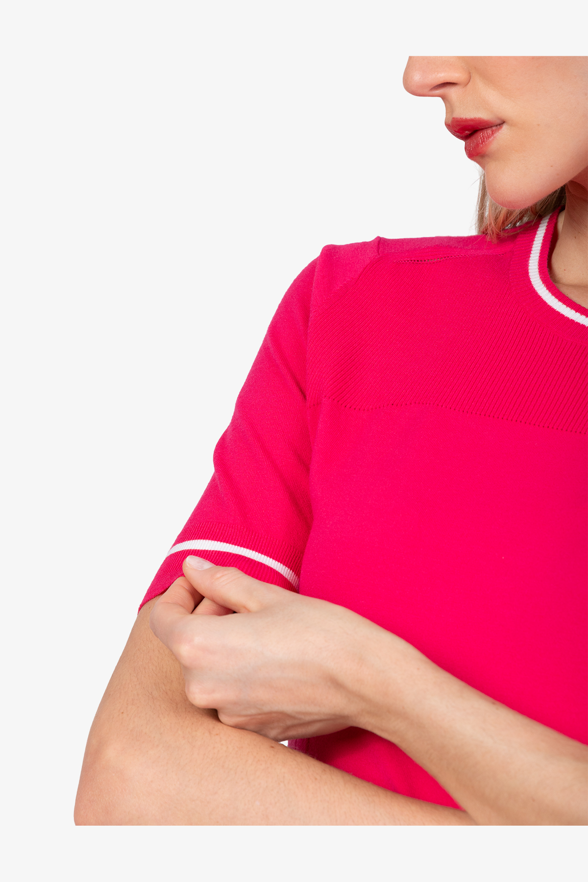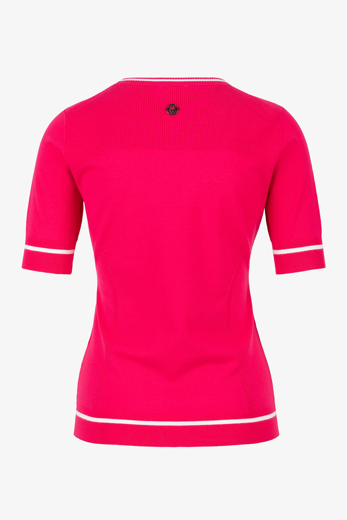 Элегантная футболка из тонкого трикотажа отличается стильными контрастными полосами и изысканным ребристым дизайном.