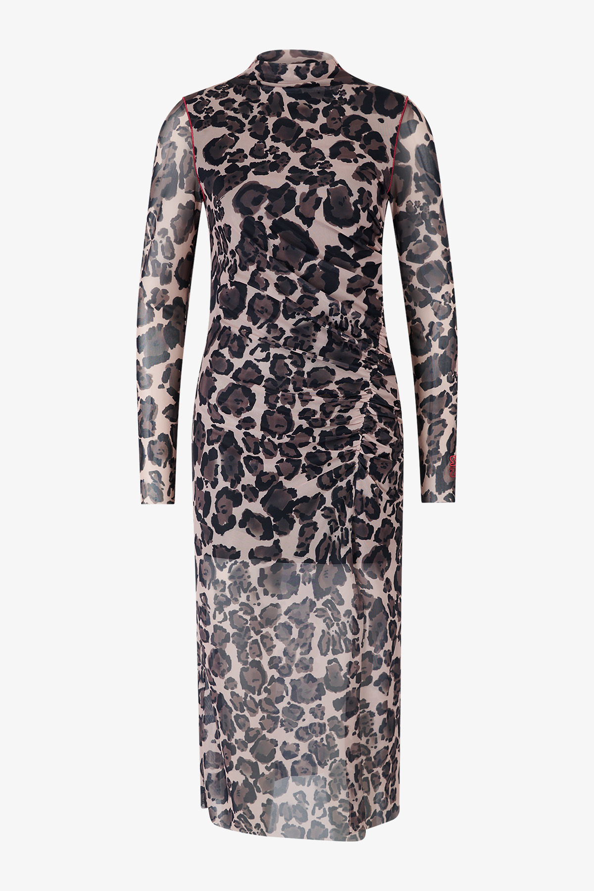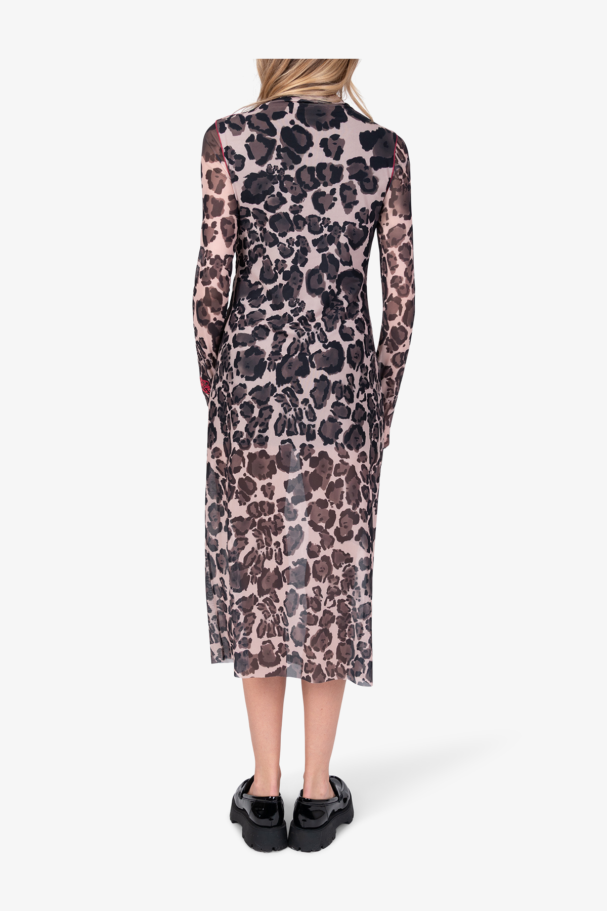 - Рукава: длинные, узкие рукава, прозрачные, с необработанным краем