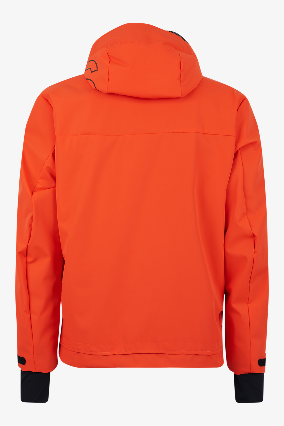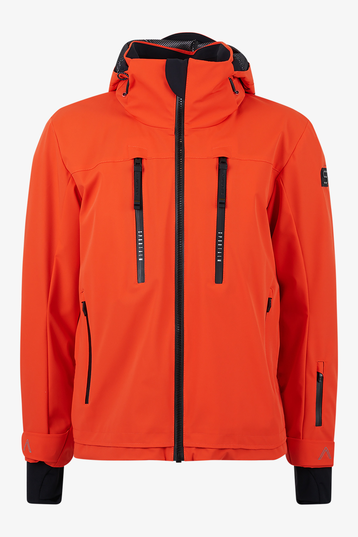 - Рукава: длинные рукава с манжетами и прорезями для большого пальца, хлястик на липучке и трансфером по низу рукава, левый рукав с видимой водонепроницаемой молнией и нашивкой Sportalm, датчик RECCO внутри правого рукава