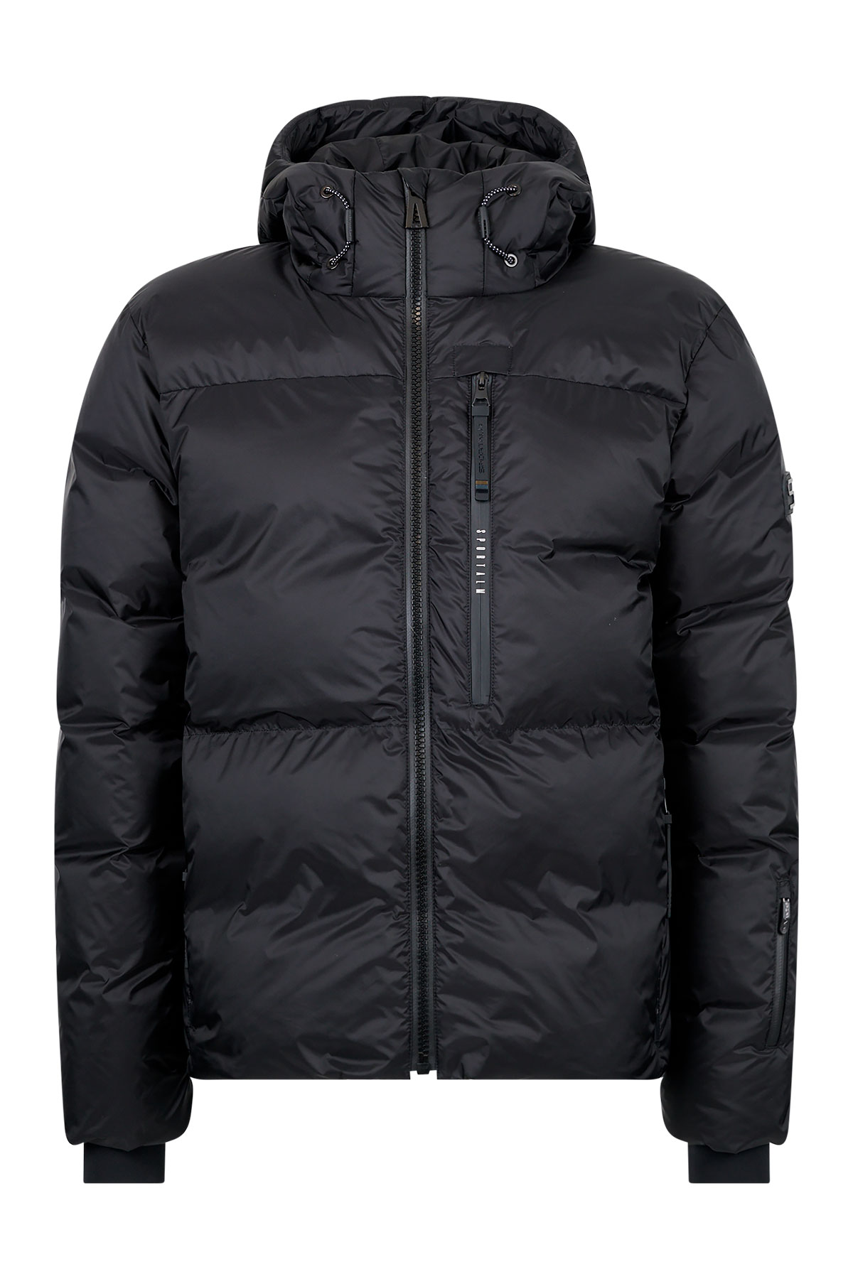 - Рукава: длинные рукава с манжетами, левый рукав с видимым водонепроницаемым карманом на молнии на предплечье и нашивкой с логотипом Sportalm на плече, правый рукав с датчиком Recco на нижней части плеча