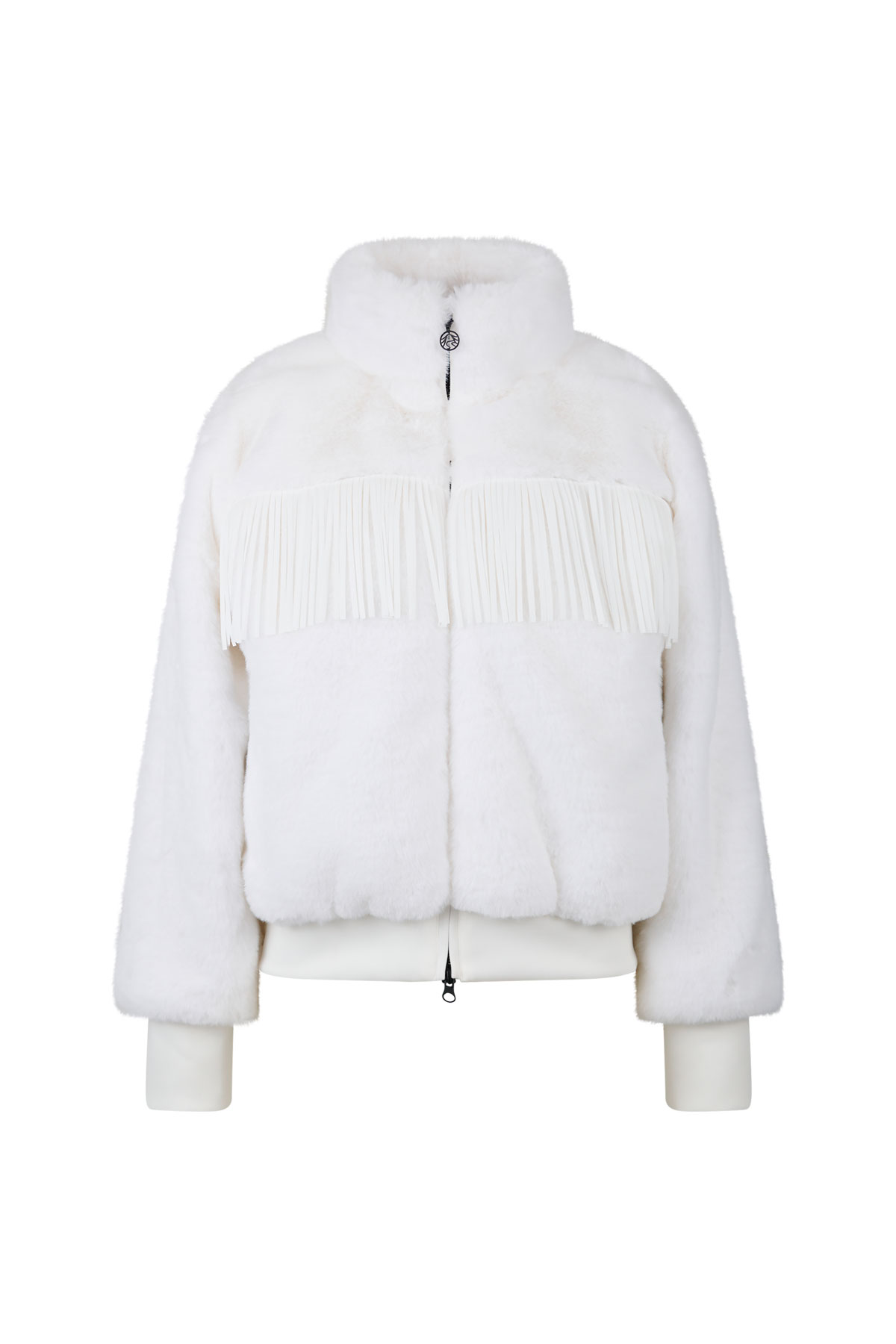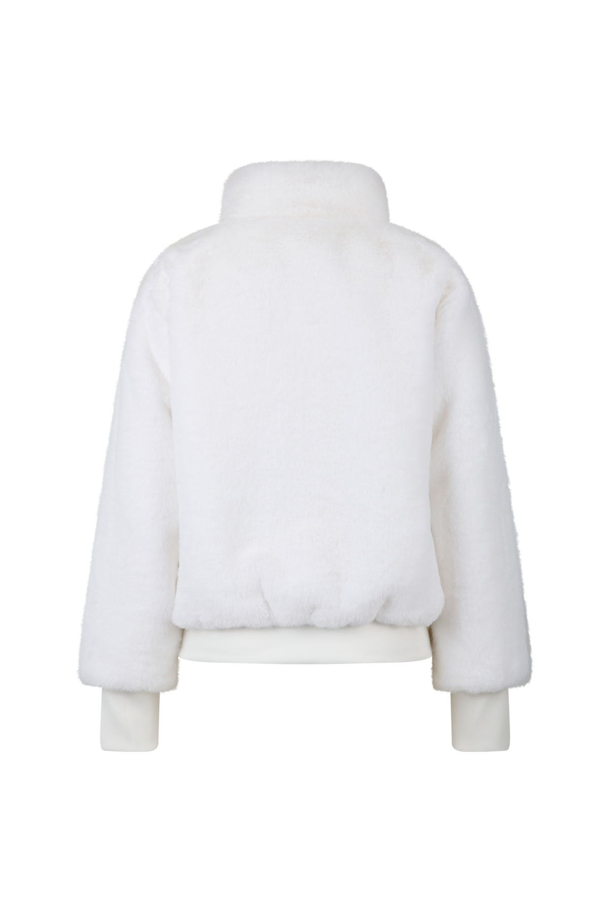 Плюшевая куртка с высоким воротником-стойкой обеспечивает комфортное тепло в холодную погоду. Деталь из кожи на груди добавляет современный и модный акцент.