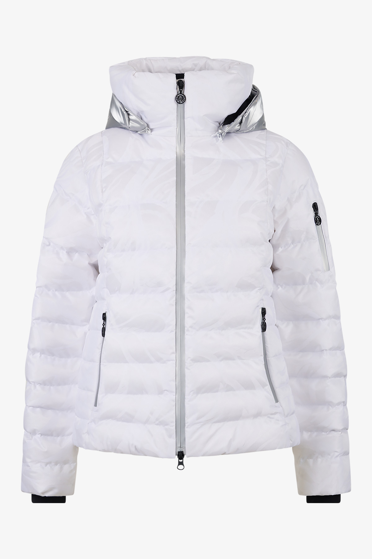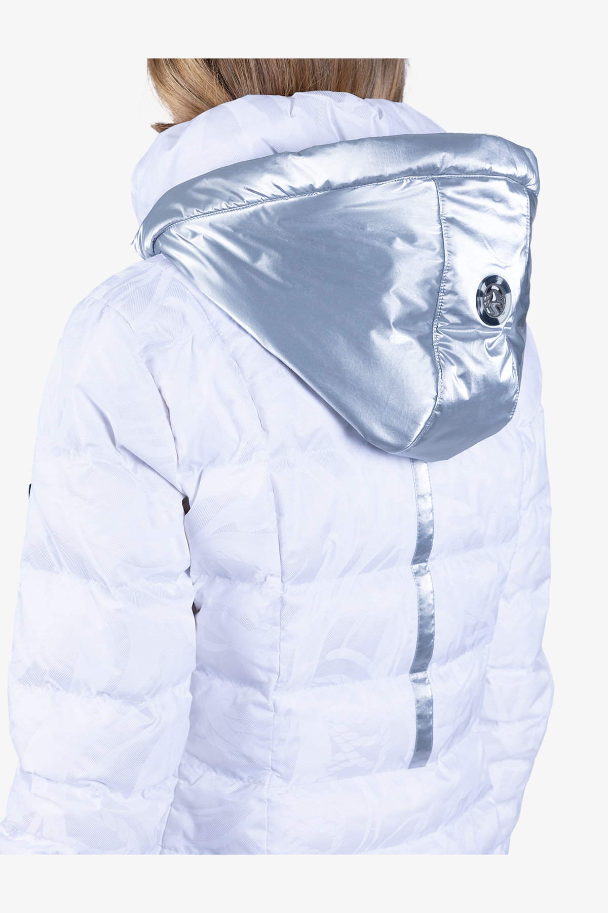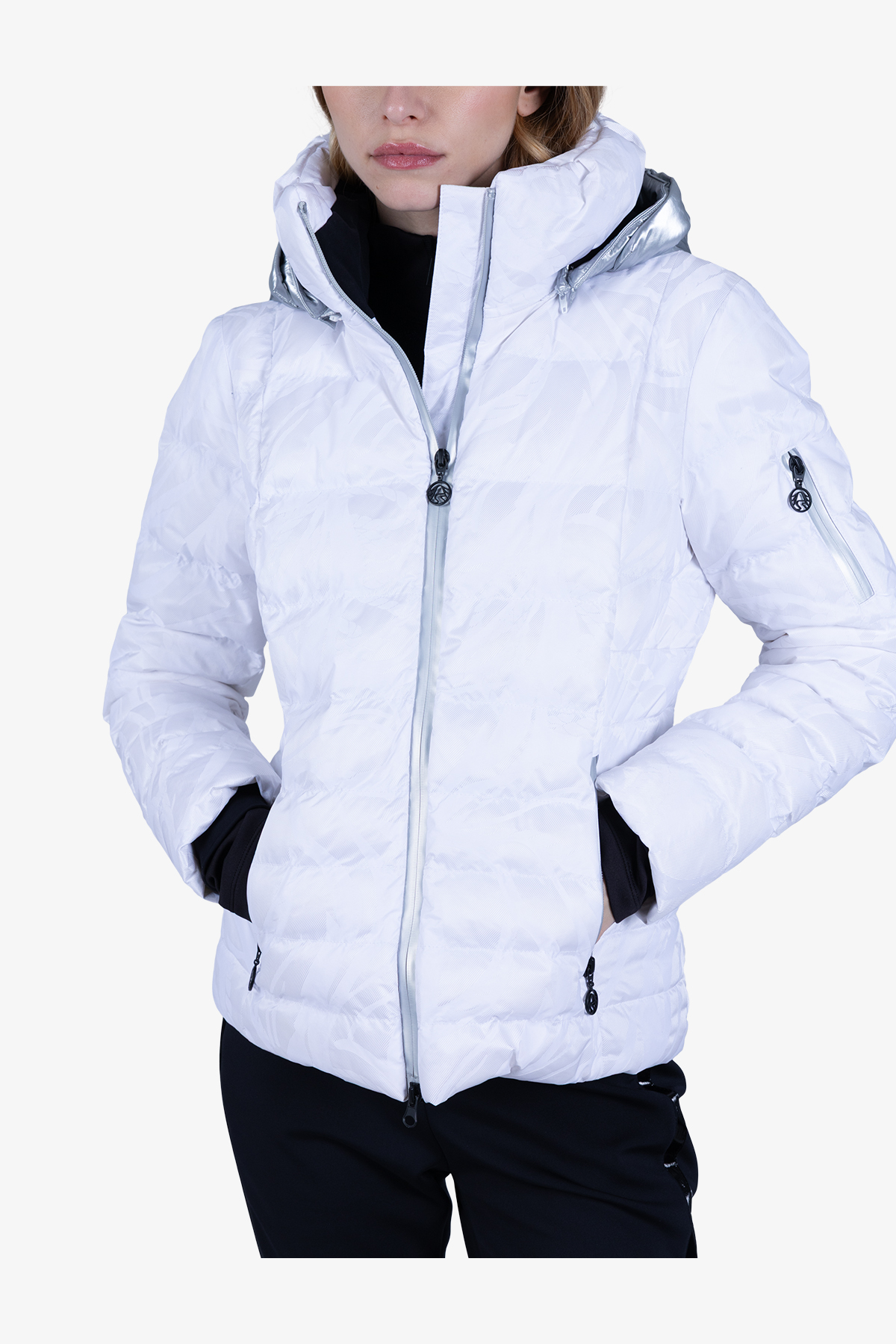 Горнолыжная куртка из высококачественного жаккардового нейлона идеально сочетает стиль и функциональность. Благодаря съемному капюшону и сдержанному дизайну она обеспечивает надежную защиту во время зимних активностей, сохраняя современный вид.