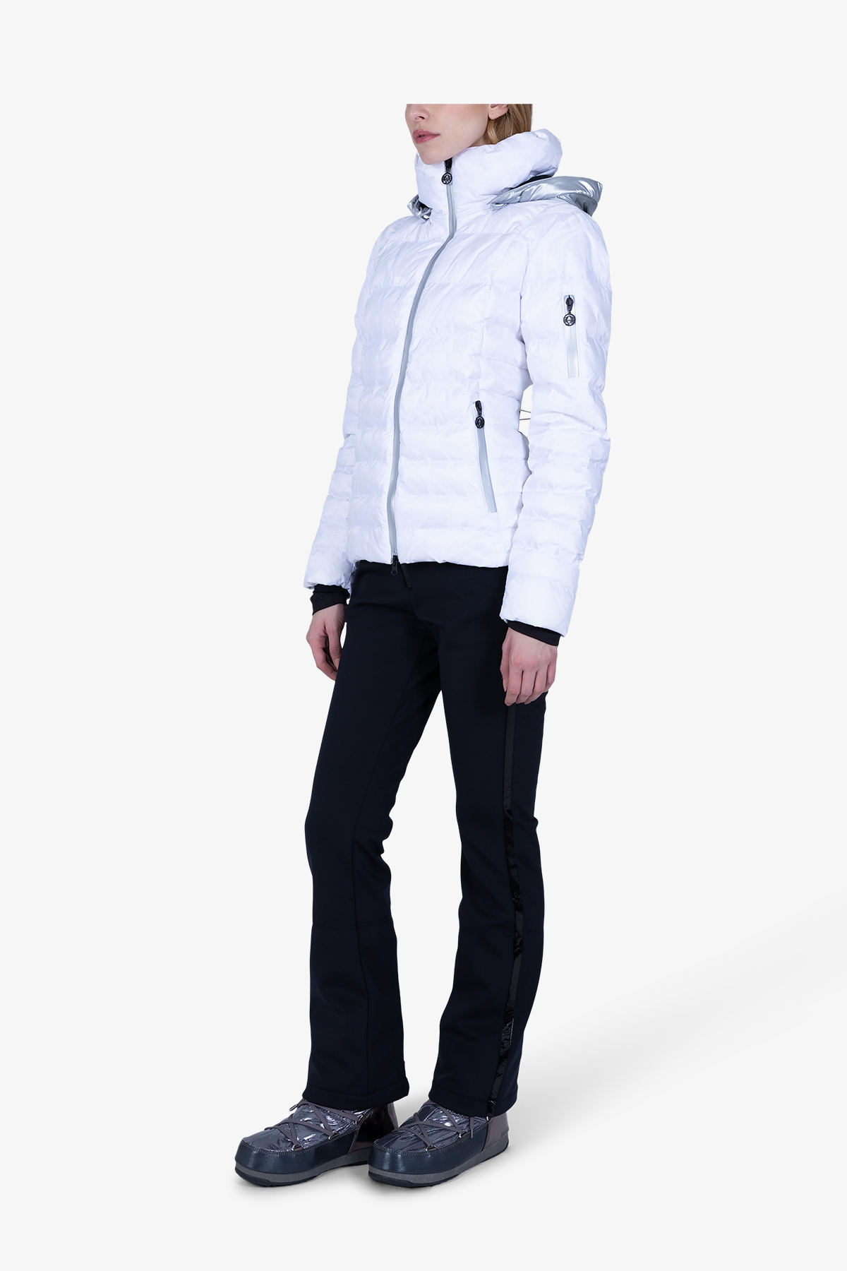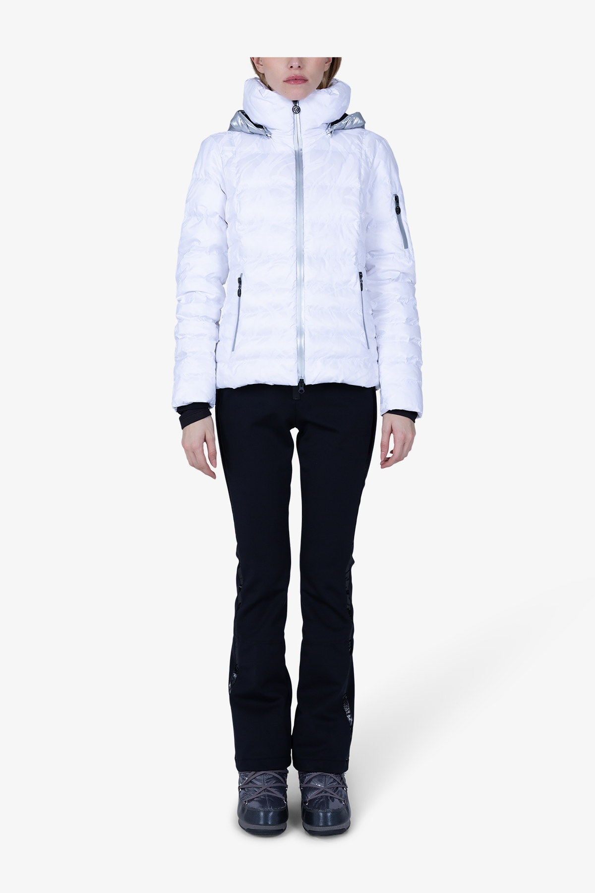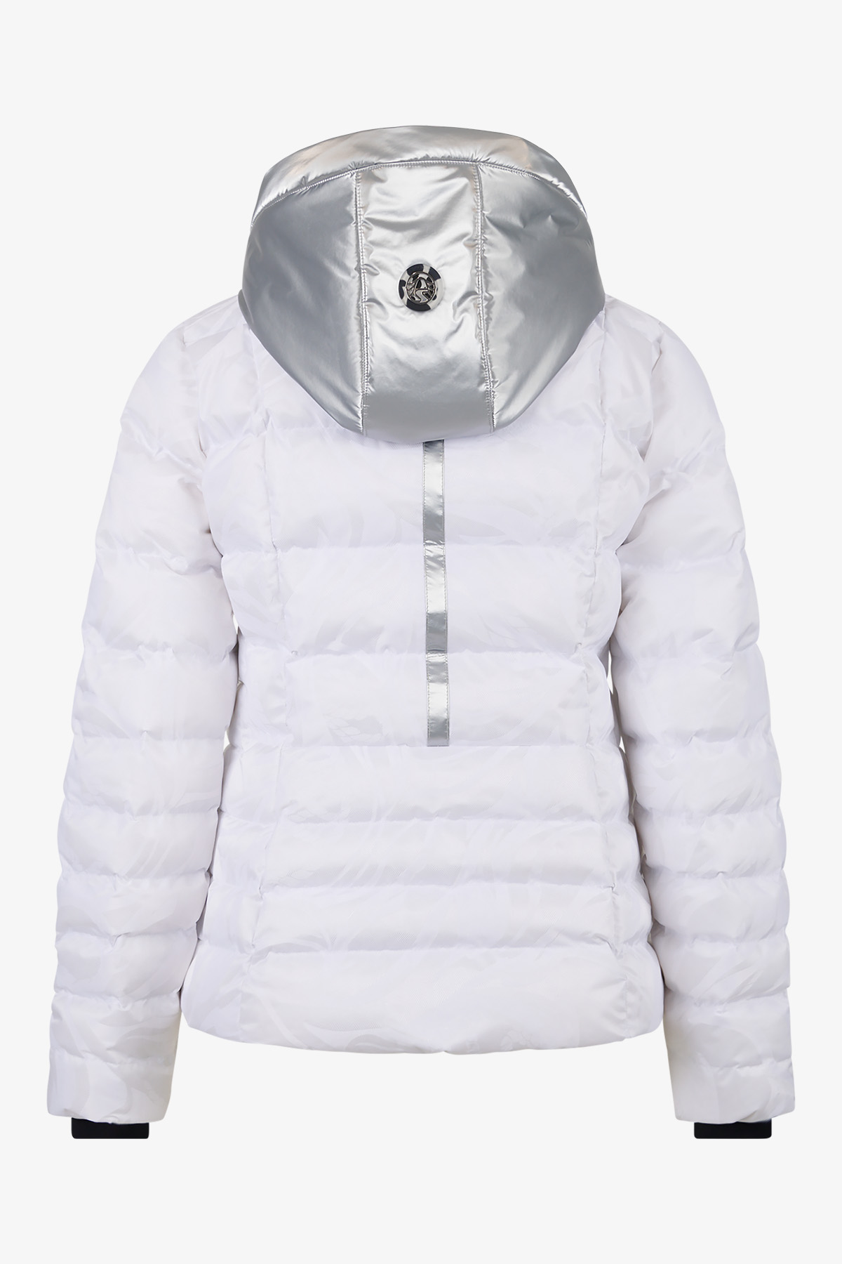 Горнолыжная куртка из высококачественного жаккардового нейлона идеально сочетает стиль и функциональность. Благодаря съемному капюшону и сдержанному дизайну она обеспечивает надежную защиту во время зимних активностей, сохраняя современный вид.