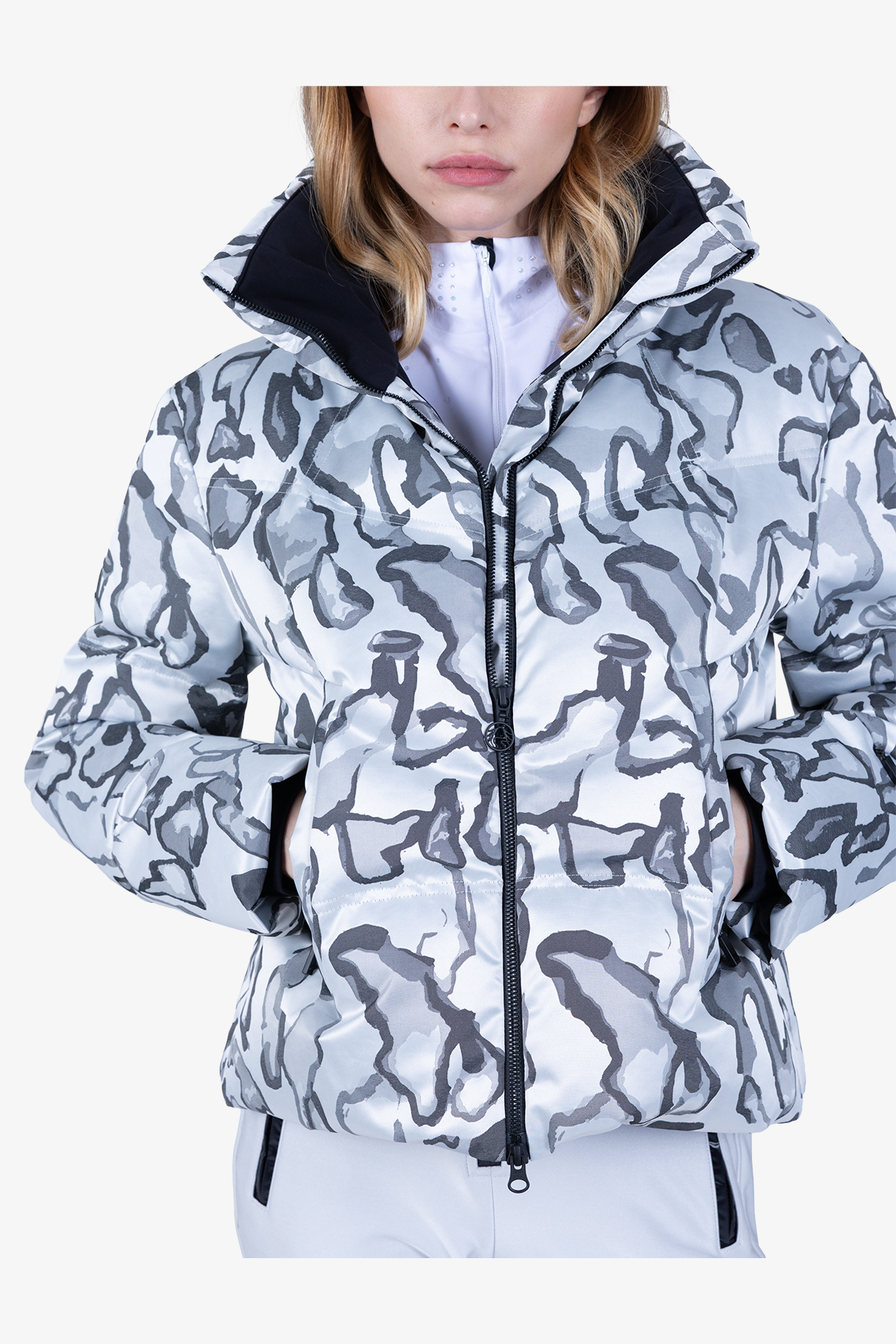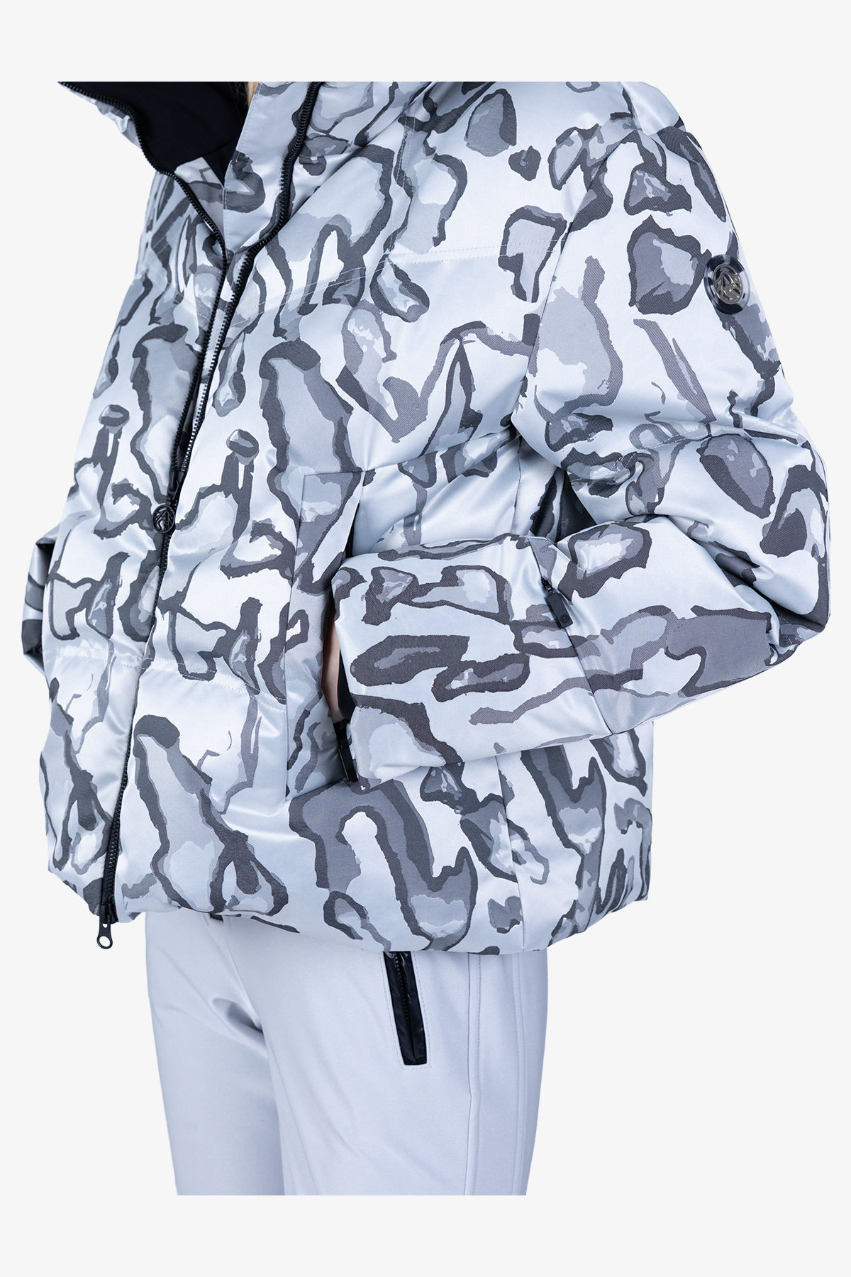 - Рукава: длинные рукава с манжетами, скрытый карман на молнии на левом рукаве, лейбл Sportalm на левом рукаве, опущенные плечи