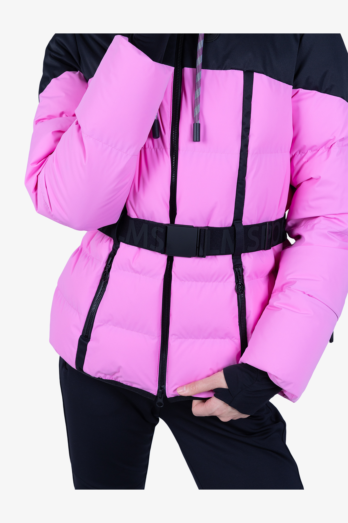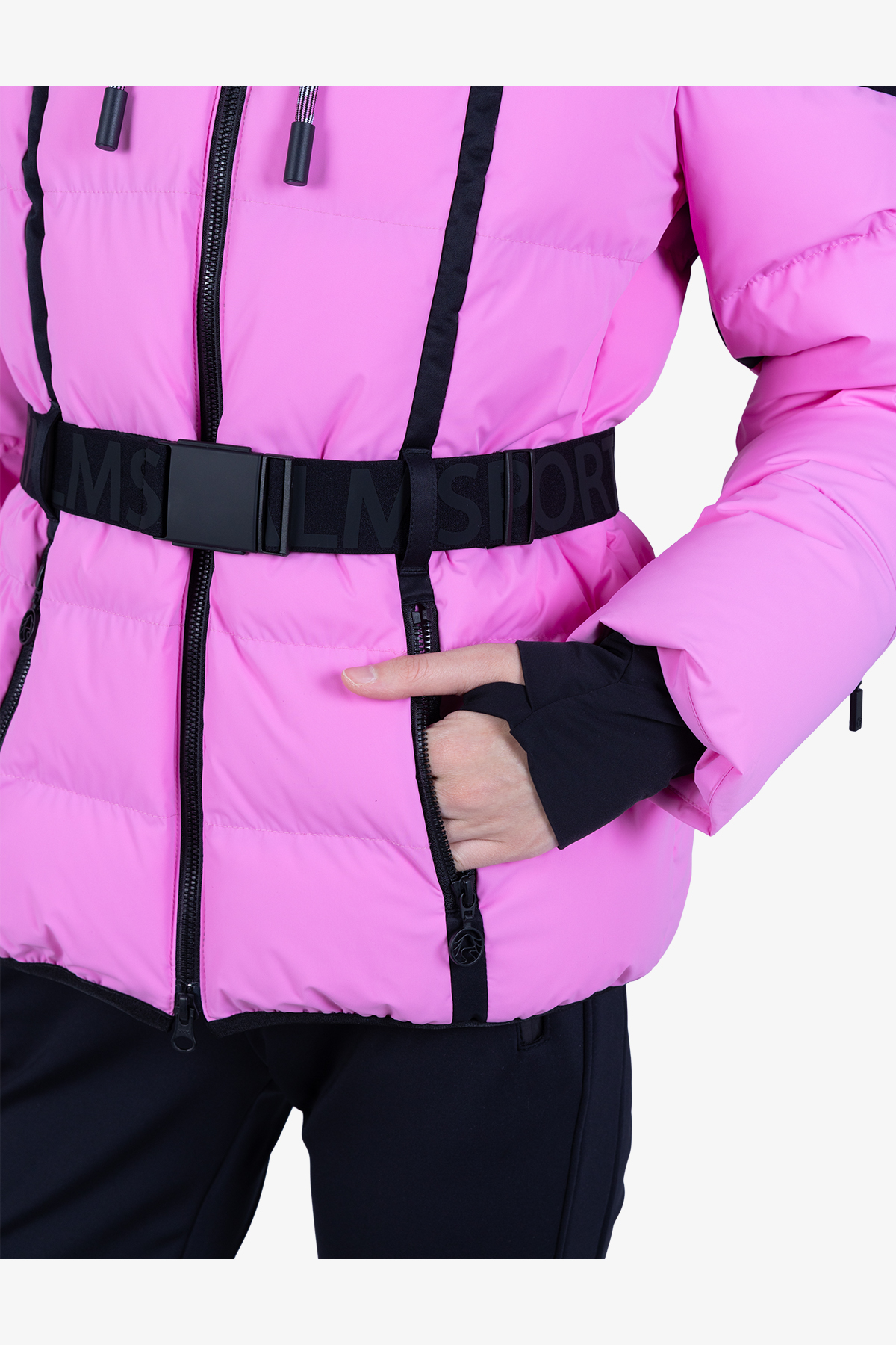 - Рукава: длинные рукава с манжетами и прорезями для большого пальца, скрытая молния на левом предплечье, датчик RECCO внутри правого рукава