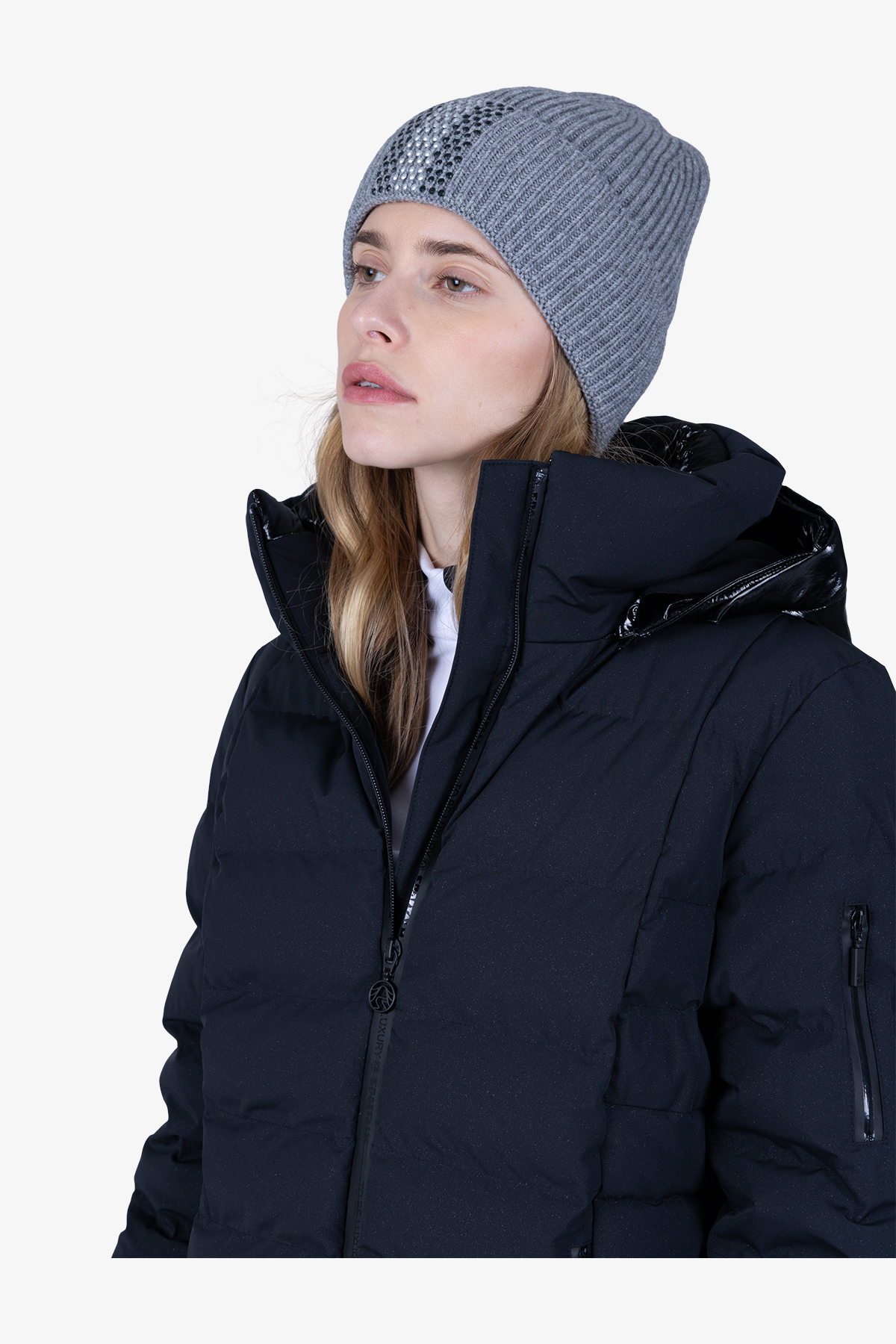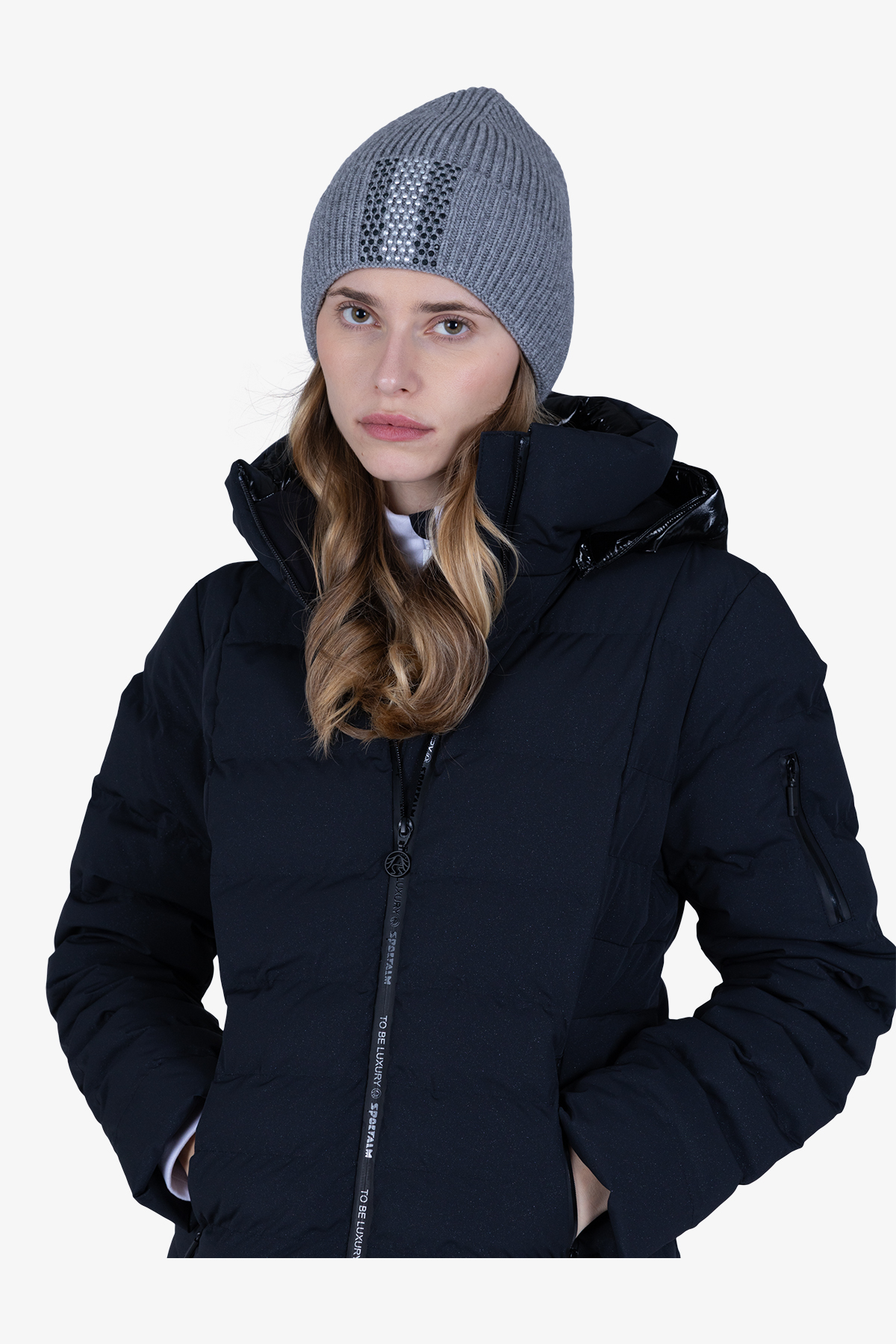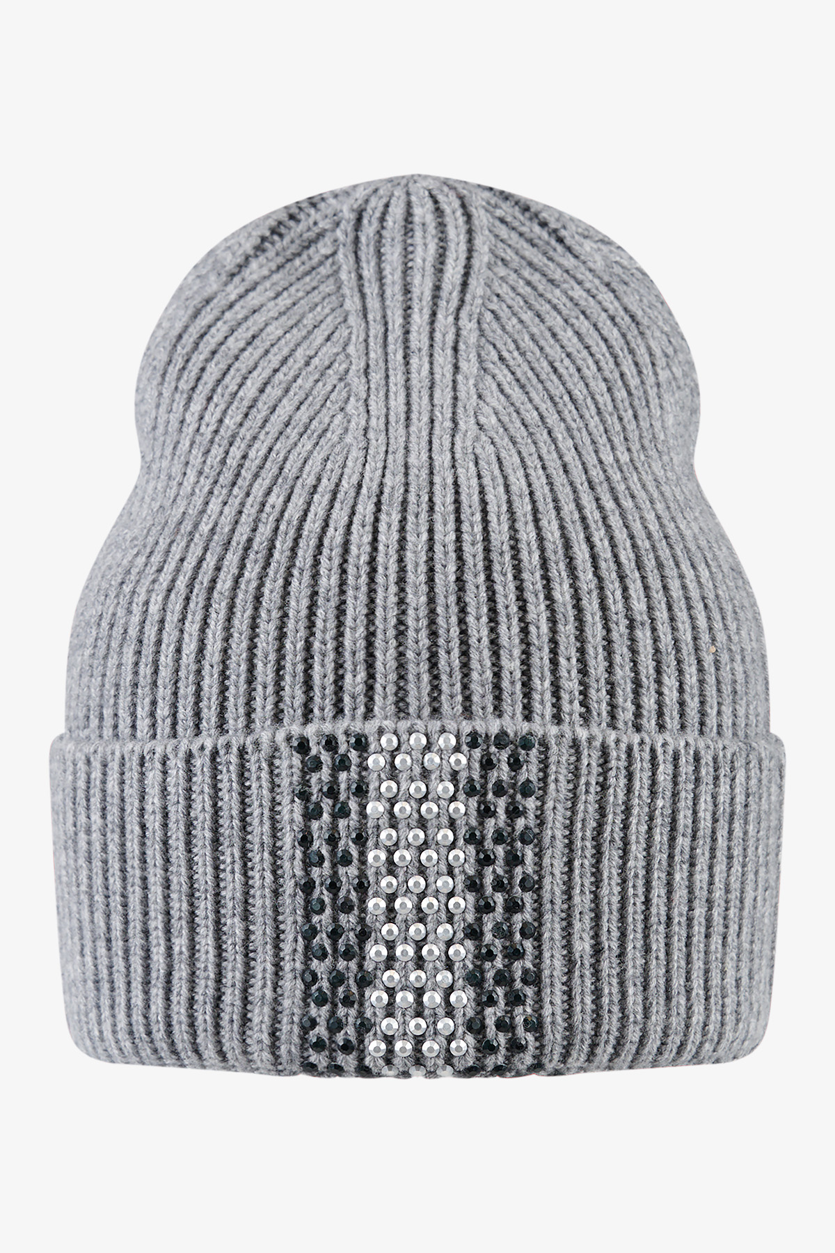 Элегантная вязаная шапка-бини из высококачественной шерстяной пряжи украшена сверкающими стразами на отвороте. Она сочетает в себе роскошный стиль и тепло.