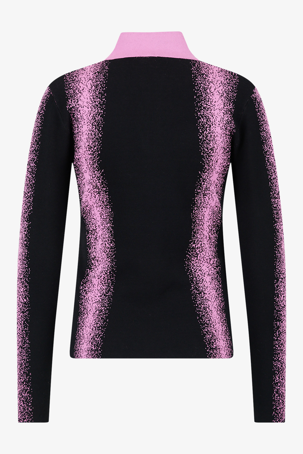 Оригинальный свитер двойной вязки с двухцветным узором выделяется пиксельным вертикальным рисунком в полоску и выразительной интарсией с логотипом Sportalm на передней части. Стильный акцент для любого модного образа.